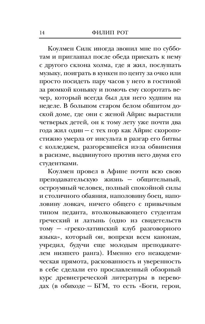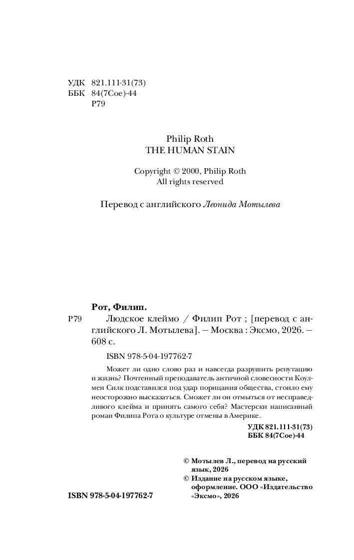 Может ли одно слово раз и навсегда разрушить репутацию и жизнь? Почтенный преподаватель античной словесности Коулмен Силк подставился под удар порицания общества, стоило ему неосторожно высказаться. Сможет ли он отмыться от несправедливого клейма и принять самого себя? Мастерски написанный роман Филипа Рота о культуре отмены в Америке.