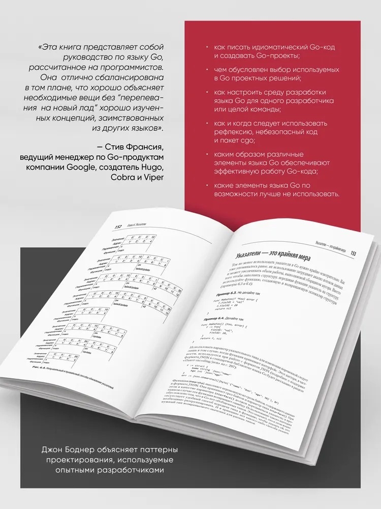 В книге собрана наиболее важная информация, необходимая для написания чистого и идиоматического Go-кода. Вы научитесь думать как Go-разработчик, вне зависимости от предыдущего опыта программирования.