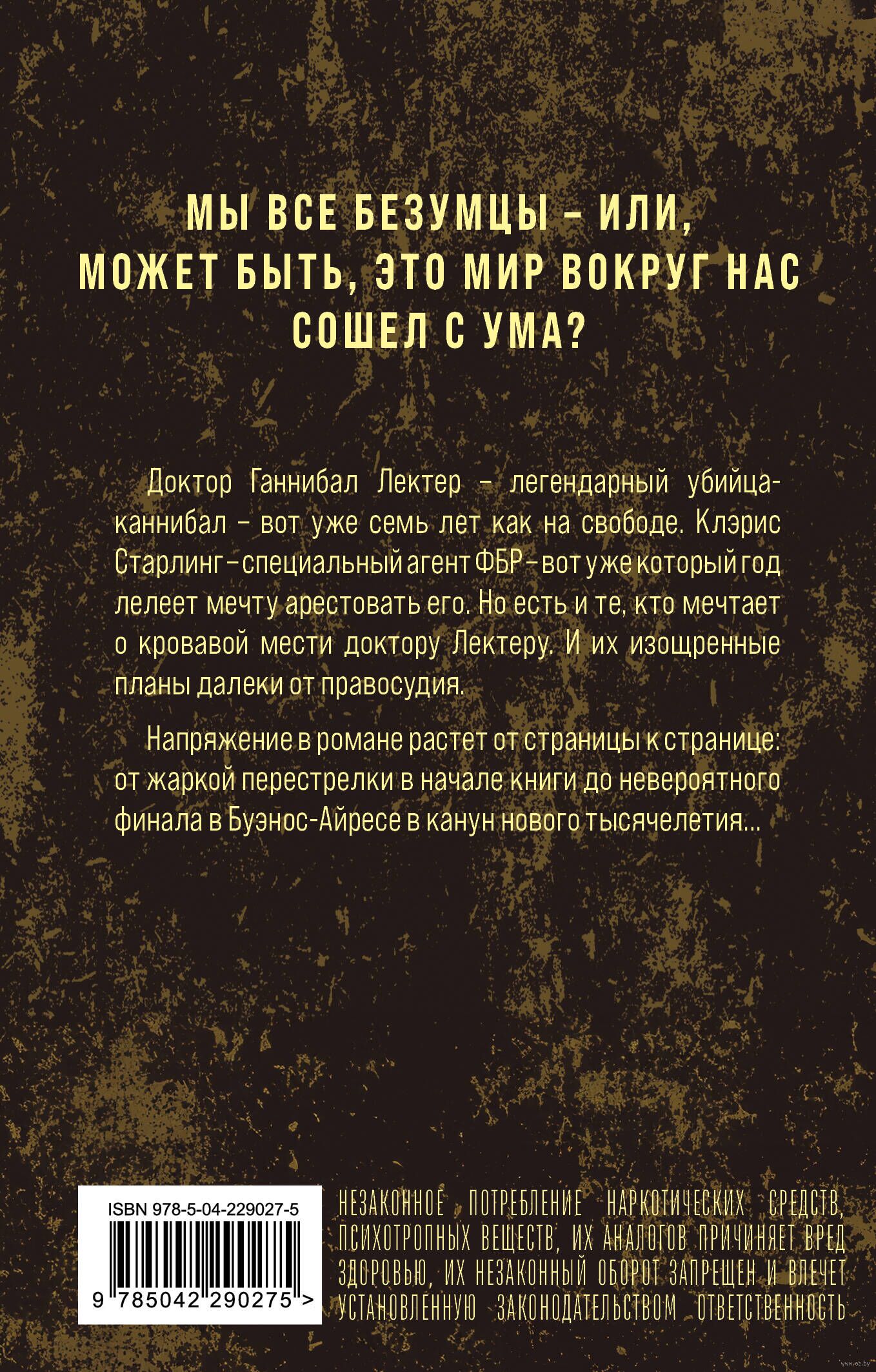 Доктор Ганнибал Лектер – легендарный убийца-каннибал – вот уже семь лет как на свободе. Клэрис Старлинг – специальный агент ФБР – вот уже который год лелеет мечту арестовать его. Но есть и те, кто мечтает о кровавой мести доктору Лектеру. И их изощренные планы далеки от правосудия.