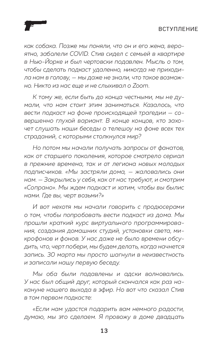 Откройте полную историю создания телевизионного феномена. Начав свой путь в 1999 году, "Сопрано" не просто стал хитом, а породил целую культурную эпоху, фанаты которой множатся по сей день. Эта книга рождалась в знаменитом подкасте Talking Sopranos, где его ведущие – звезды сериала – делились со зрителями уникальными воспоминаниями. Теперь это повествование расширено до масштаба исчерпывающего исследования, основанного на интервью со всей съемочной командой. Погрузитесь в самую подробную хронику легендарного шоу.