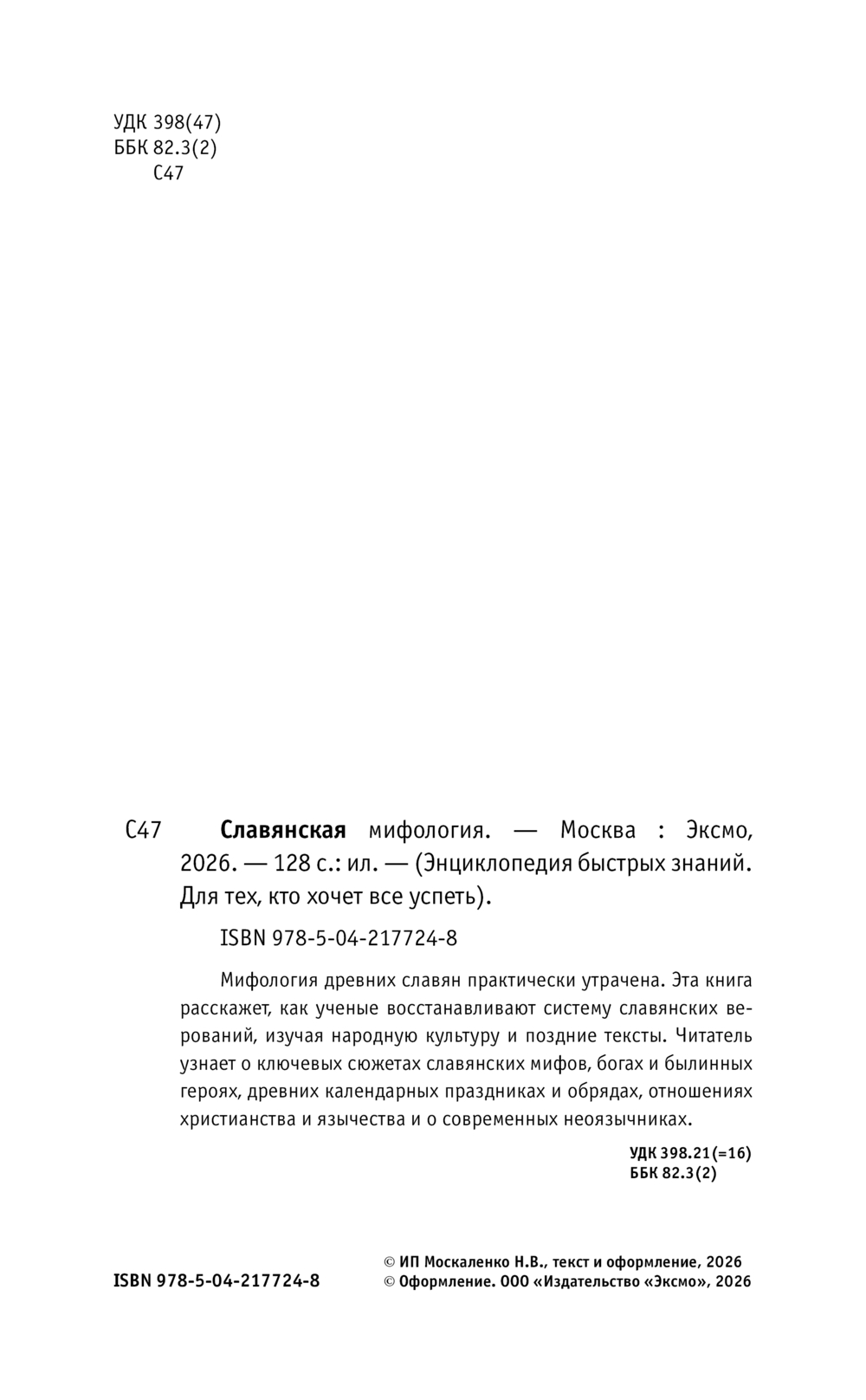 Мифология древних славян практически утрачена. Эта книга расскажет, как ученые восстанавливают систему славянских верований, изучая народную культуру и поздние тексты. Читатель узнает о ключевых сюжетах славянских мифов, богах и былинных героях, древних календарных праздниках и обрядах, отношениях христианства и язычества и о современных неоязычниках.