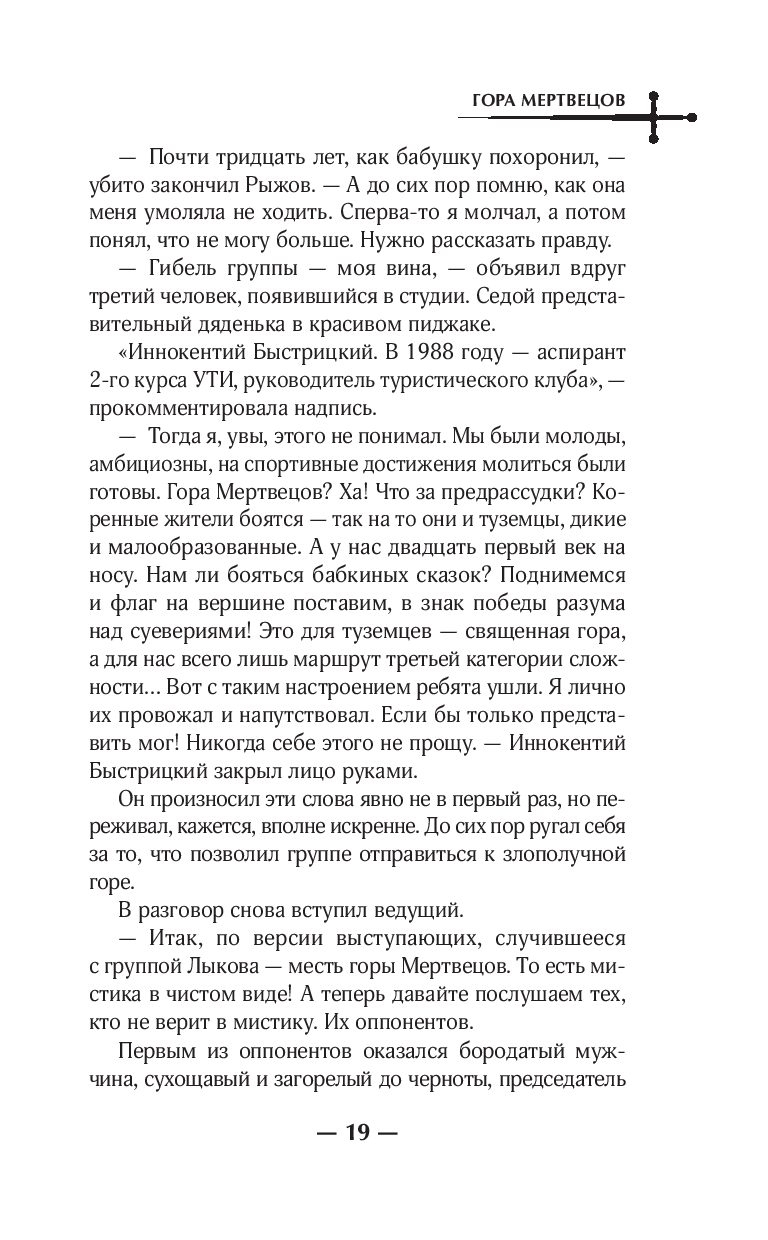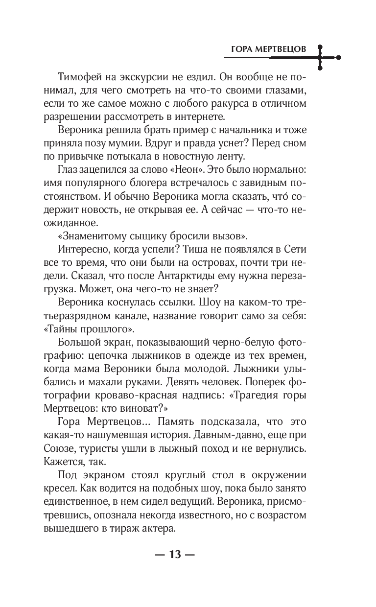 Однажды, в конце 80-х, группа туристов, осмелившаяся взойти на эту гору, погибла при загадочных обстоятельствах. Тимофей Бурлаков, специалист по архивным уголовным делам, более известный под именем Неон, не верит в сверхъестественное. Но для того чтобы спасти свою репутацию, он вынужден начать расследование дела тридцатилетней давности.