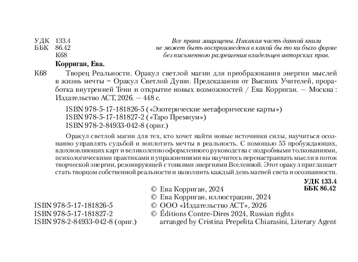 "Творец Реальности" – это оракул светлой магии для тех, кто хочет найти новые источники силы, научиться осознанно управлять судьбой и воплотить мечты в реальность.