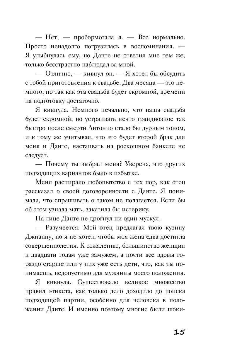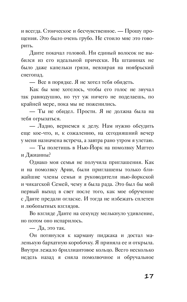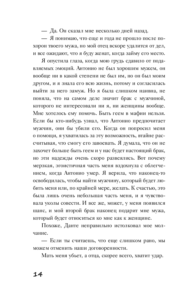 Оставшись вдовой, Валентина Ареско не стремилась снова выйти замуж. Но судьба приготовила ей сюрприз: родители организовали ее брак с Данте Кавалларо, будущим Доном чикагского Синдиката. В свои тридцать шесть он будет самым молодым главой этой преступной организации в истории.