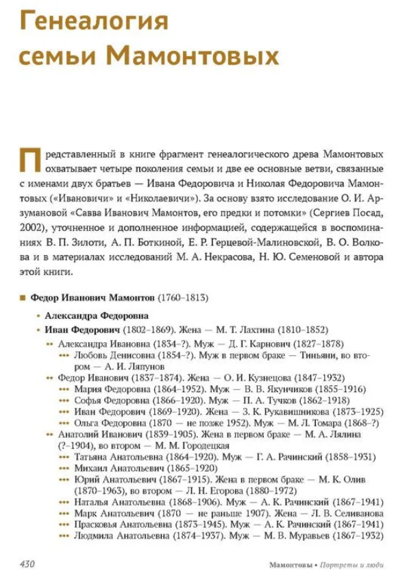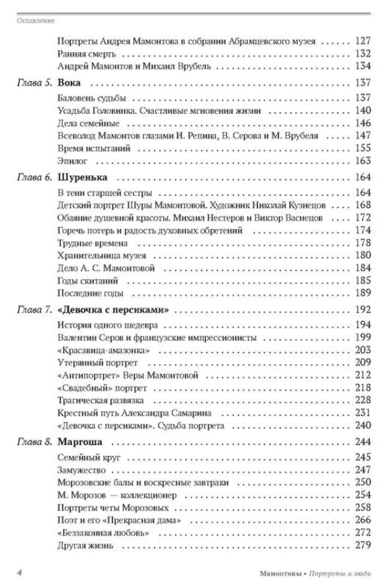 В книге рассказывается о судьбах представителей нескольких поколений семьи Мамонтовых, запечатленных на портретах знаменитых русских художников конца ХIХ – начала ХХ века: И. Репина, В. Серова, В. Васнецова, М. Врубеля, К. Коровина и многих других. Большое внимание уделено истории создания и бытования самих портретов, взаимоотношениям художников и их моделей.