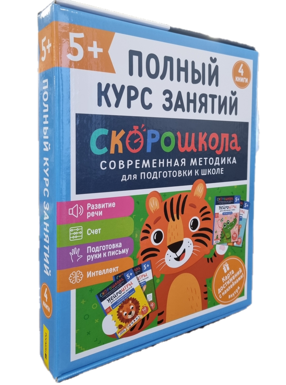 4 книги помогут ребенку развить необходимые навыки по четырем основным напралениям: речь, счет, письмо, интелект.
