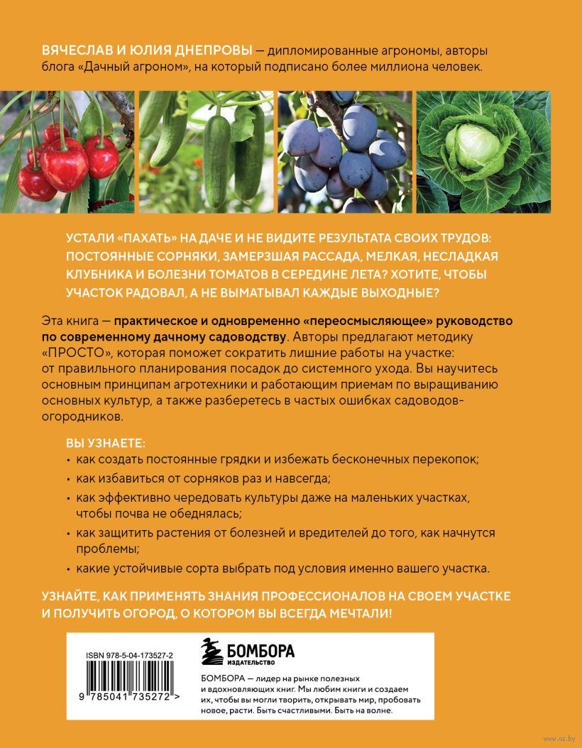 Эта книга – практическое и одновременно "переосмысляющее" руководство по современному дачному садоводству. Вячеслав и Юлия Днепровы – дипломированные агрономы и авторы блога "Дачный агроном" с аудиторией более миллиона подписчиков – собрали в этой книге понятную систему, которая приводит к урожаю без изнурительного труда. Методика "ПРОСТО" поможет сократить лишние работы на участке: от правильного планирования посадок до системного ухода. Вы научитесь основным принципам агротехники и работающим приемам по выращиванию основных культур, а также разберетесь в частых ошибках садоводов-огородников.