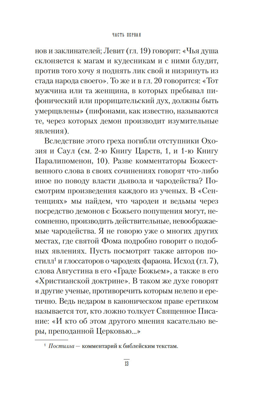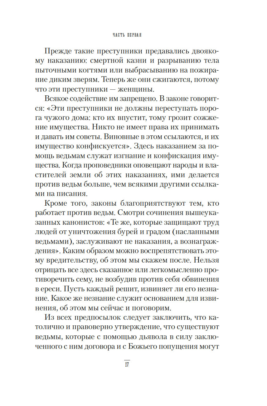В первой части автор мстительно обвиняет должностных лиц, отрицающих колдовство, в ереси, во второй части в красках описывает типы злодейств, совершаемых «служителями», а вернее сказать, "служительницами дьявола", в третьей – формулирует для своих последователей правила судебного преследования и жестокого наказания ведьм…