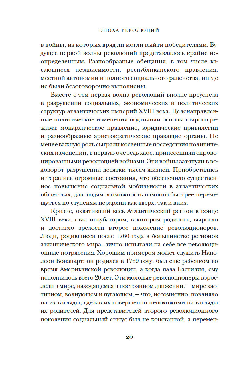 С 1760-х по 1820-е годы, несколько долгих, тревожных, бурных десятилетий, по всему миру от Северной Америки до Гаити бушевали революции. Революционеры разрушали сложившиеся иерархии и сносили с лица земли империи, свергали королей и начинали опустошительные войны. Они создали новый мир, однако мощные двигатели революции порождали новые формы неравенства.