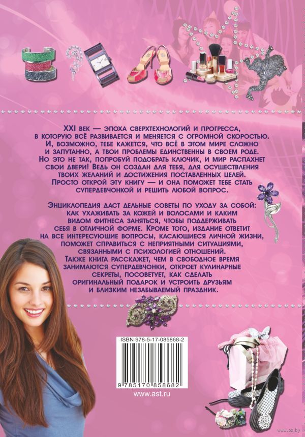 Энциклопедия даст дельные советы по уходу за собой: как ухаживать за кожей и волосами и каким видом фитнеса заняться, чтобы поддерживать себя в отличной форме. Кроме того, издание ответит на все интересующие вопросы, касающиеся личной жизни, поможет справиться со сложными ситуациями, связанными с психологией отношений. Книга также посоветует, чем заняться в свободное время, откроет кулинарные секреты, расскажет, как сделать оригинальный подарок и устроить друзьям и близким незабываемый праздник.