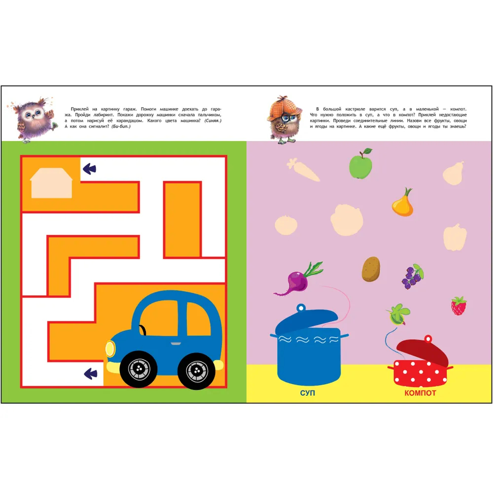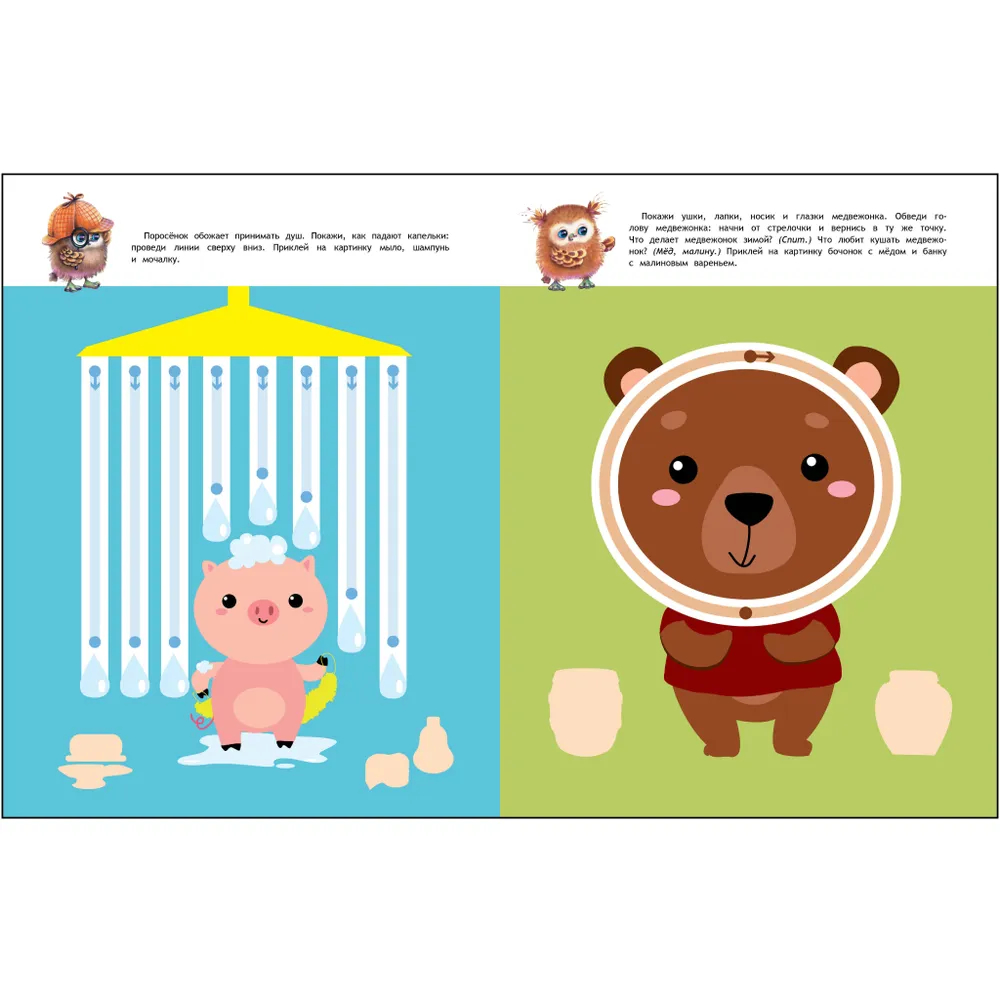 В каждом пособии в середине книги находится лист с наклейками, необходимыми для выполнения заданий.