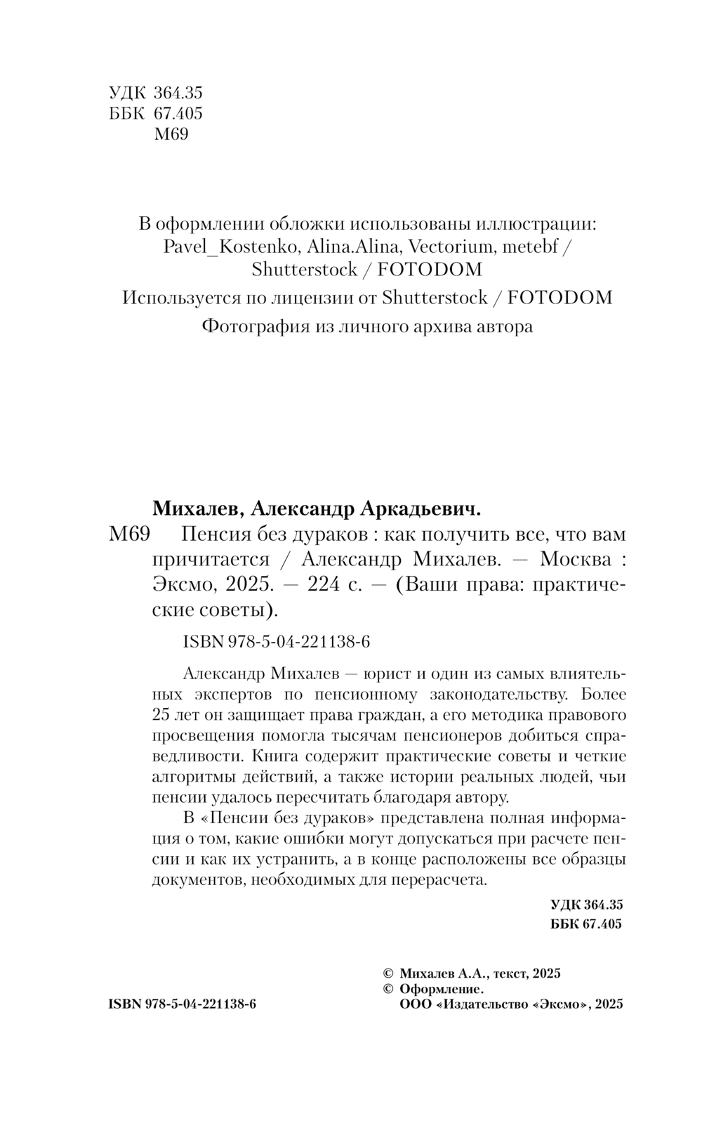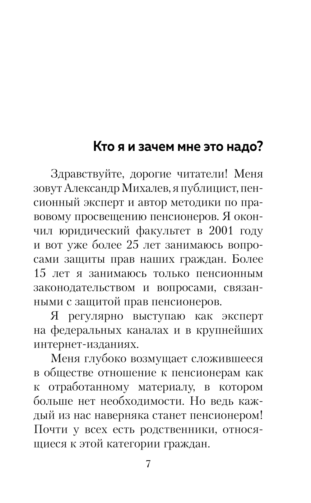 Александр Михалев – юрист и один из самых влиятельных экспертов по пенсионному законодательству. Более 25 лет он защищает права граждан, а его методика правового просвещения помогла тысячам пенсионеров добиться справедливости. Книга содержит практические советы и четкие алгоритмы действий, а также истории реальных людей, чьи пенсии удалось пересчитать благодаря автору.