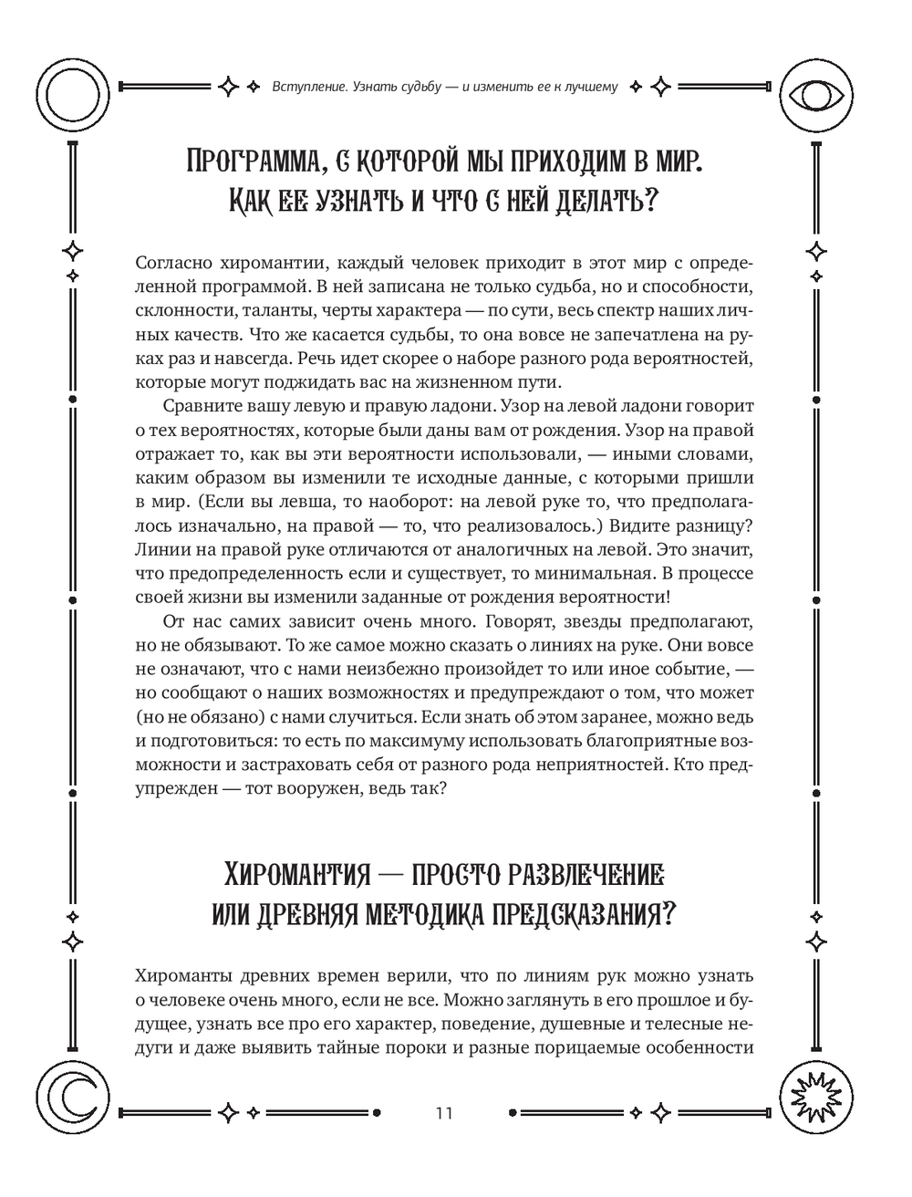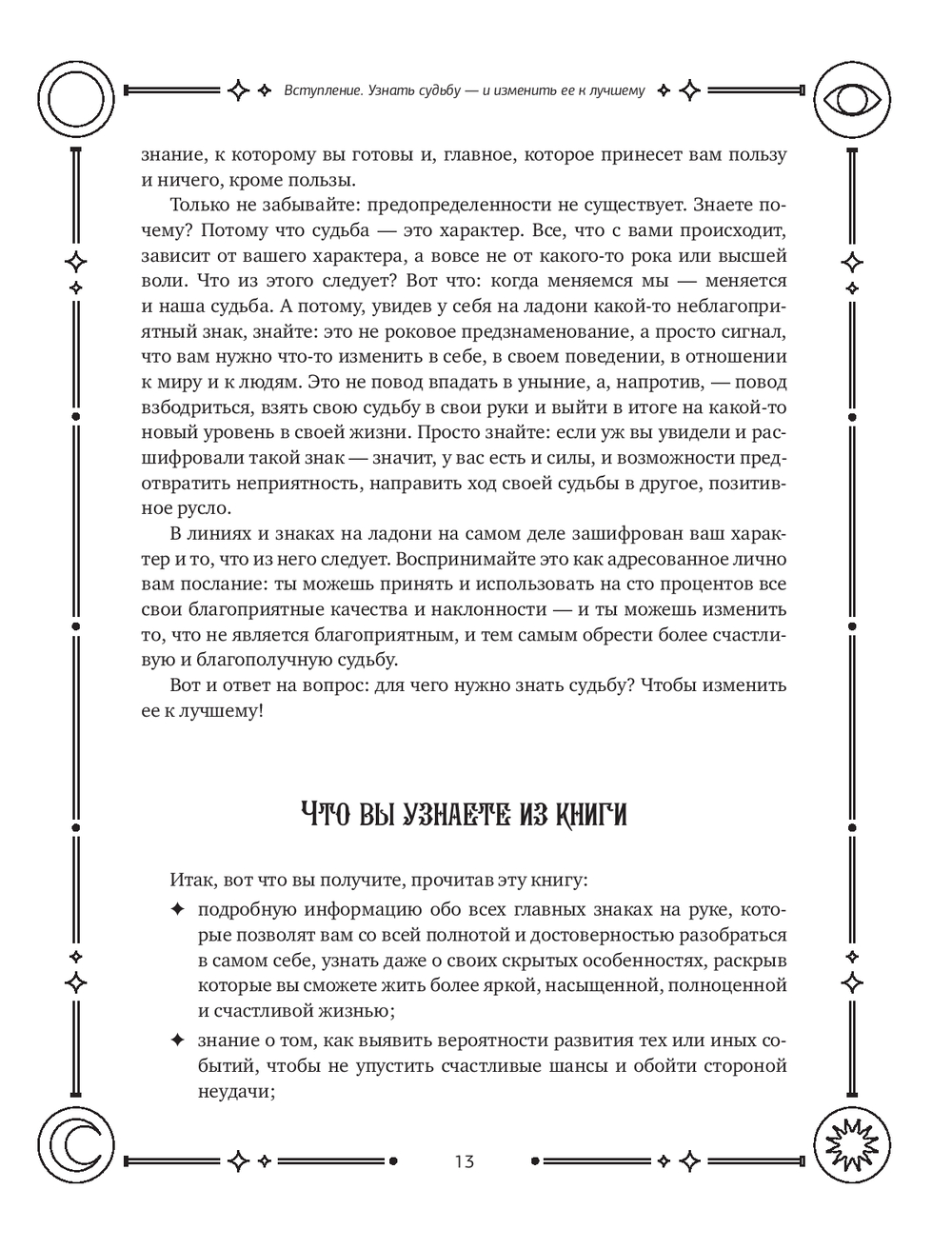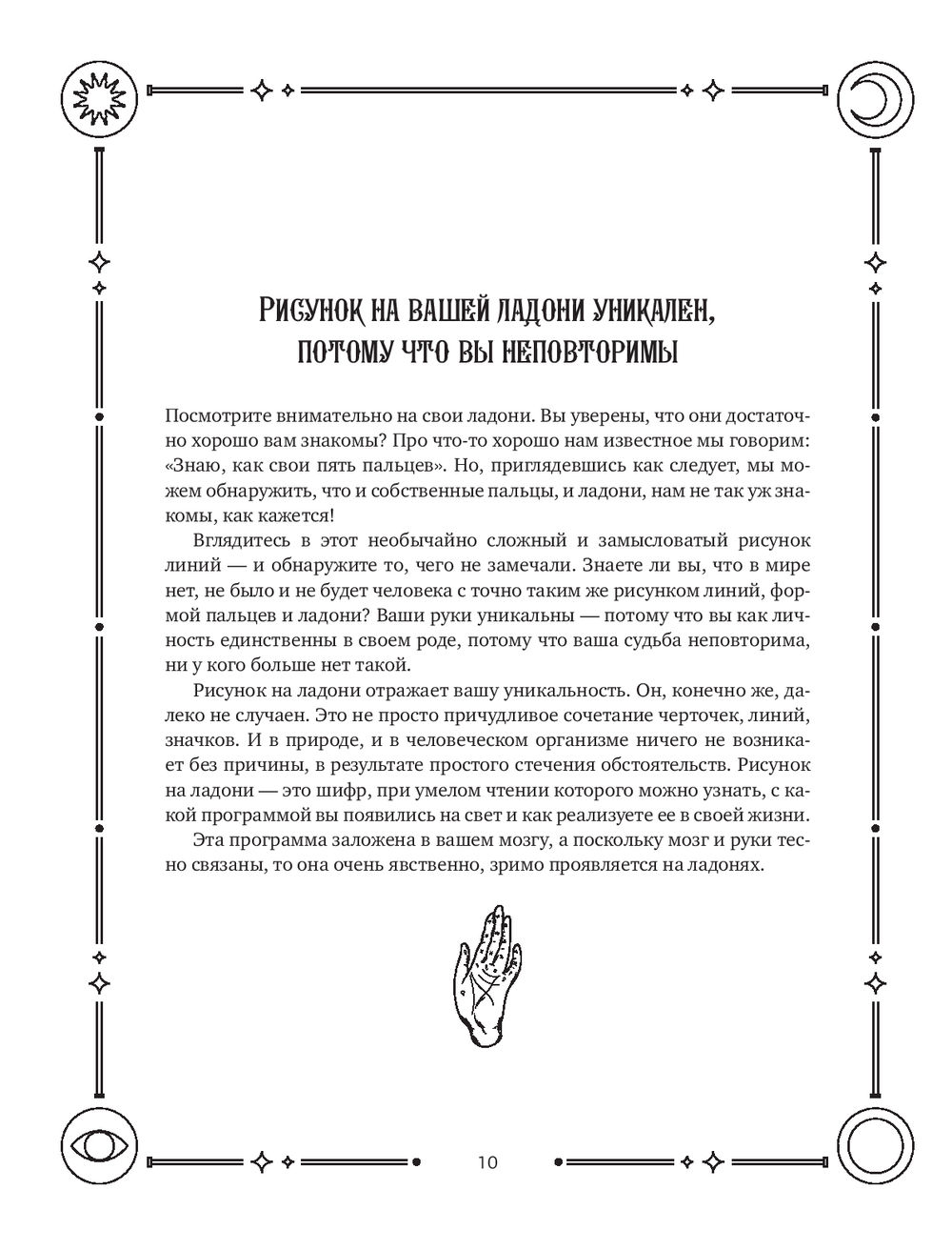 Что это за программа? Хироманты уверены, что в ней записаны склонности, таланты и спектр вероятностей будущего. Ни один знак не появляется на ладонях просто так. Толкования и описания линий, которые вы найдете в книге, проверены на практике и помогут раскрыть глубинную суть хиромантии.
