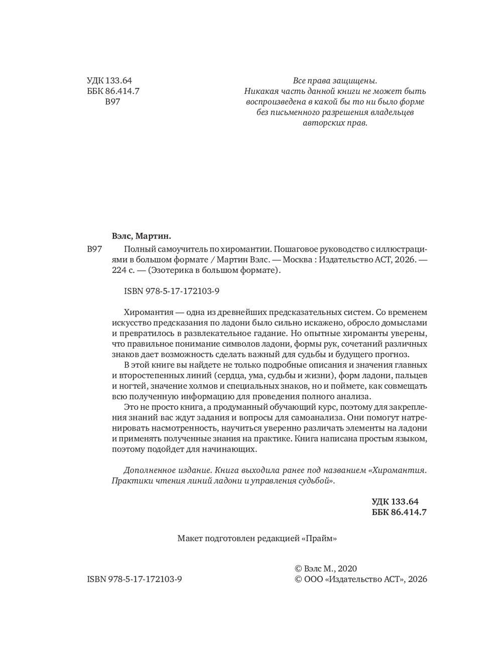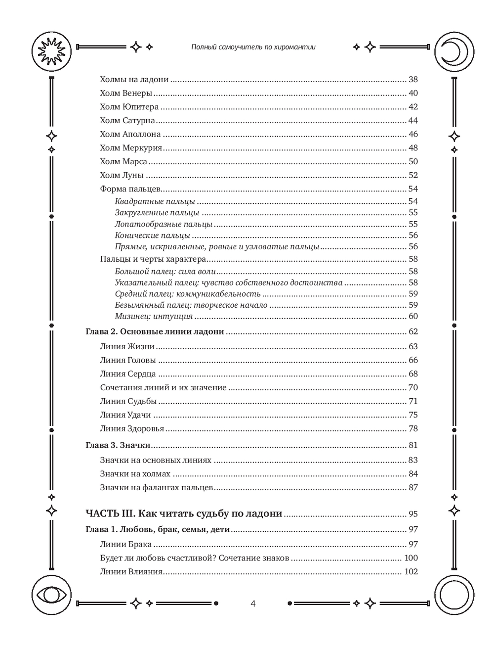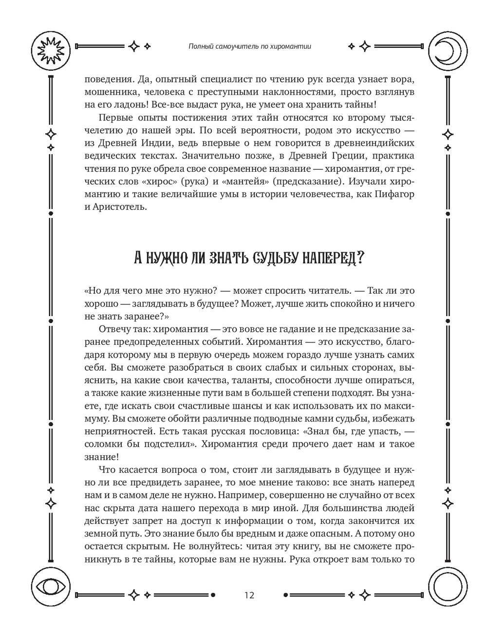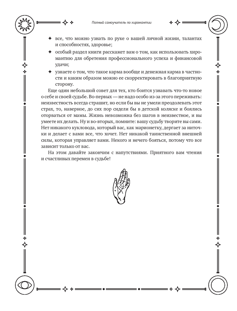 Что это за программа? Хироманты уверены, что в ней записаны склонности, таланты и спектр вероятностей будущего. Ни один знак не появляется на ладонях просто так. Толкования и описания линий, которые вы найдете в книге, проверены на практике и помогут раскрыть глубинную суть хиромантии.