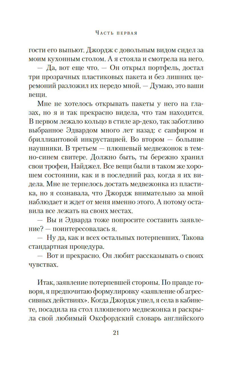 Ту ночь они почти не обсуждают, но оба знают: тогда их брак дал трещину. Стыд, вина, невысказанные обиды и недомолвки превратили трещину в зияющую пропасть. Но вот преступник пойман, близится суд. Решатся ли Изабель и Эдвард открыто говорить о нападении перед столькими людьми, а главное – друг перед другом?