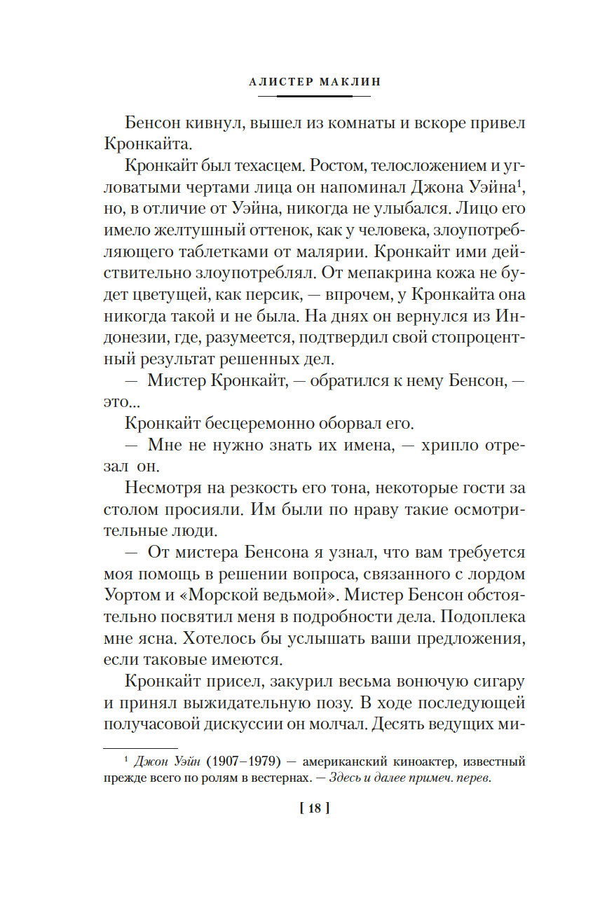 Алистер Маклин (1922-1987) – британский писатель, автор 28 остросюжетных романов и приключенческих рассказов, сценарист. Его имя широко известно читателям всего мира. Книги Маклина разошлись тиражом более 150 миллионов экземпляров, по его романам, сценариям и сюжетам было снято 18 фильмов. В 1983 году Университет Глазго присвоил писателю степень доктора литературоведения.