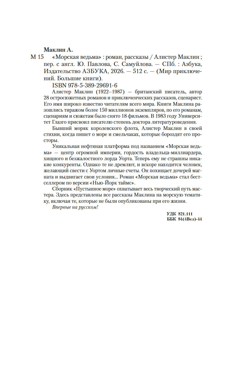 Сборник "Пустынное море" охватывает весь творческий путь мастера. Здесь представлены все рассказы Маклина на морскую тематику, включая те, которые не были опубликованы при его жизни.
