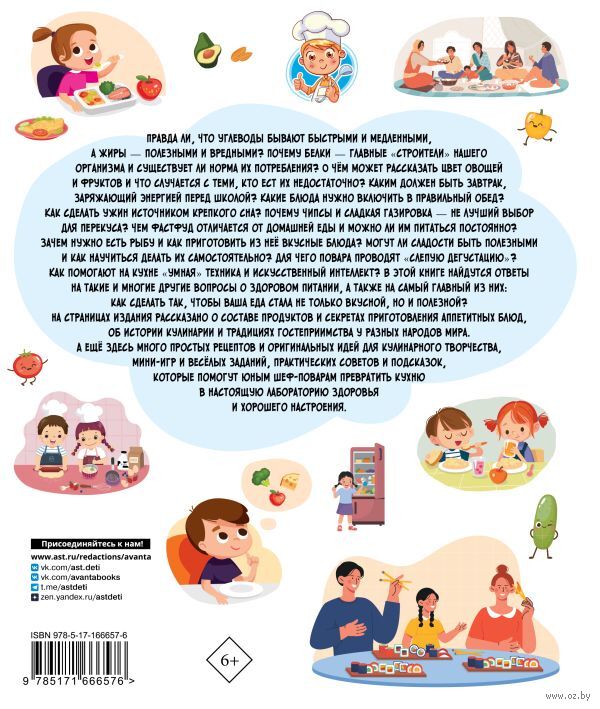 Эта книга способна превратить изучение основ здорового питания не только в весёлую и познавательную игру, но и в увлечение на всю жизнь. Юные читатели примерят на себя роль шеф-повара и окунутся в мир кулинарных знаний и вкусных экспериментов. Ребята узнают о том, какие суперсилы скрывает в себе сбалансированный завтрак, сытный обеди лёгкий ужин. А ещё они поймут, почему в питании так важны белки, жиры и углеводы,научатся отличать полезную еду от вредной и познакомятся с маленькими друзьями большого здоровья – витаминами и микроэлементами.
