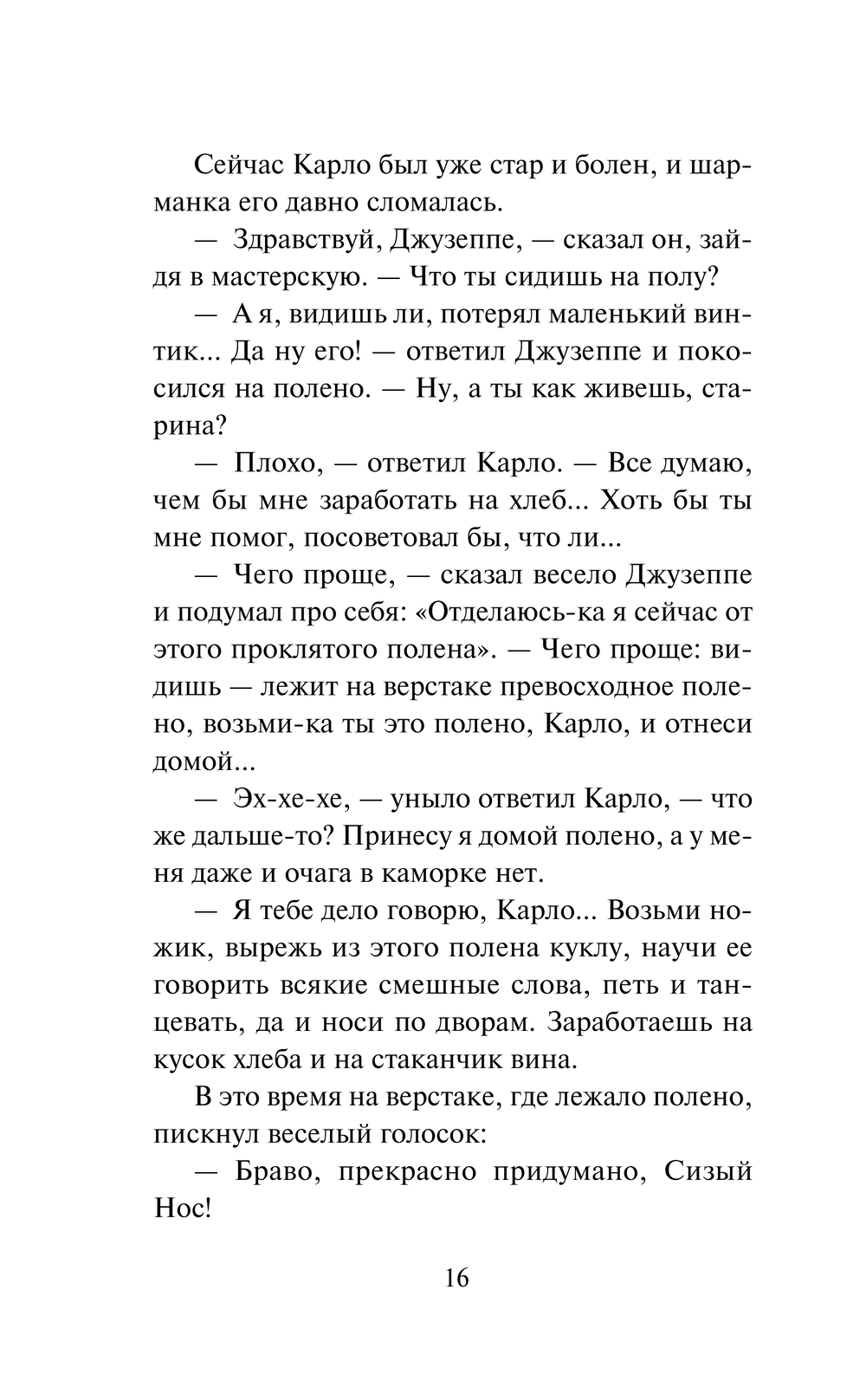 "Кто с доброй сказкой входит в дом и с детства каждому знаком", – БУ – ра – ти – но! Но всегда есть дети, кто еще не читал и не видел кино про Буратино – для них это издание с иллюстрациями Татьяны Глущенко. Буратино получился романтичный и наивный, а остальные герои – комические и нетривиальные.