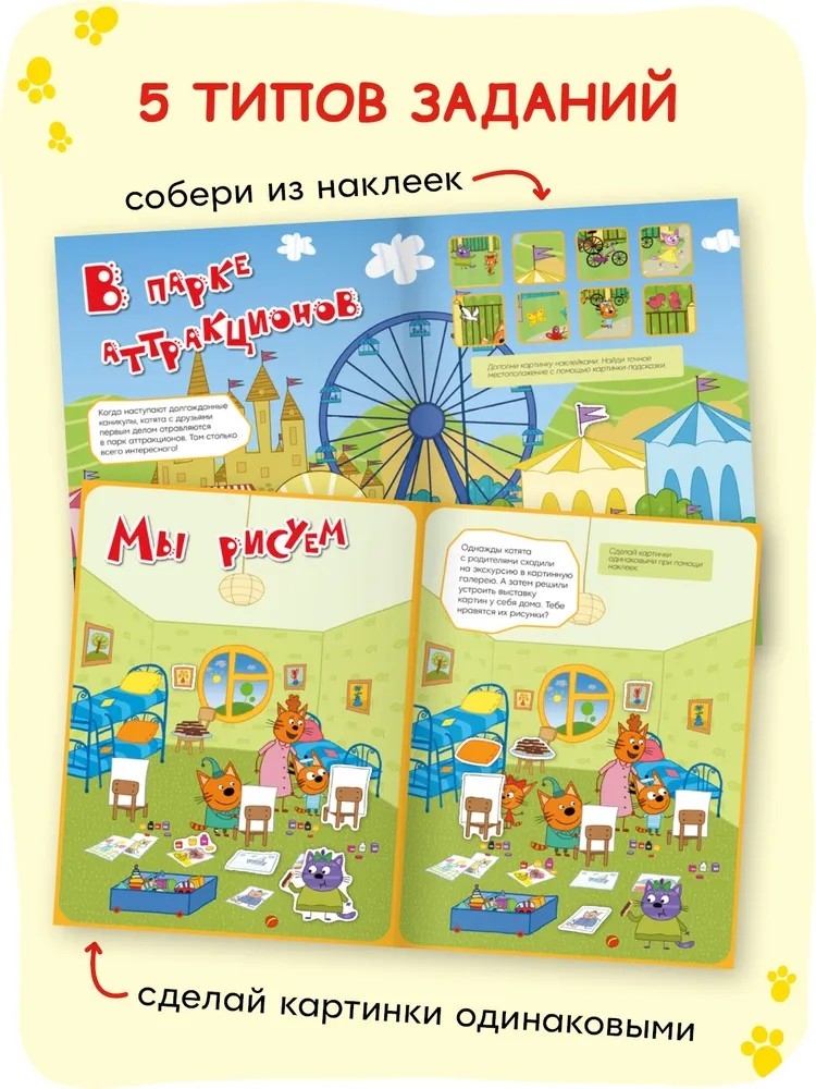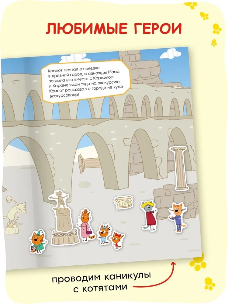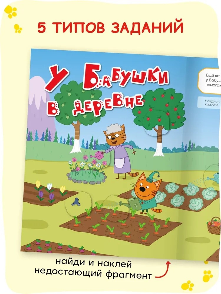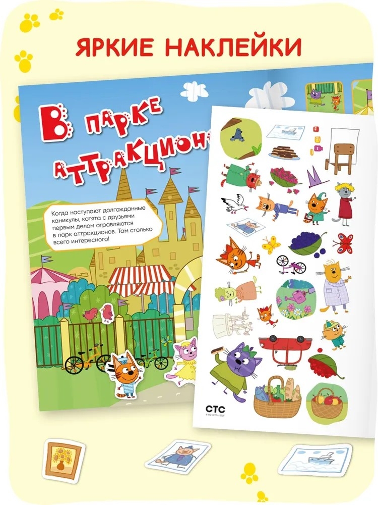 В этом красочном альбоме ребёнка ждут три кота и другие забавные животные. Вместе с ними малыш выполнит множество увлекательных заданий, используя разные стикеры: большие, маленькие и специальные кружочки. Игра с интересными наклейками – это не только весело, но и очень полезно! Она способствует развитию речи, мелкой моторики, логики и внимания. Все упражнения в альбоме носят обучающий и познавательный характер.