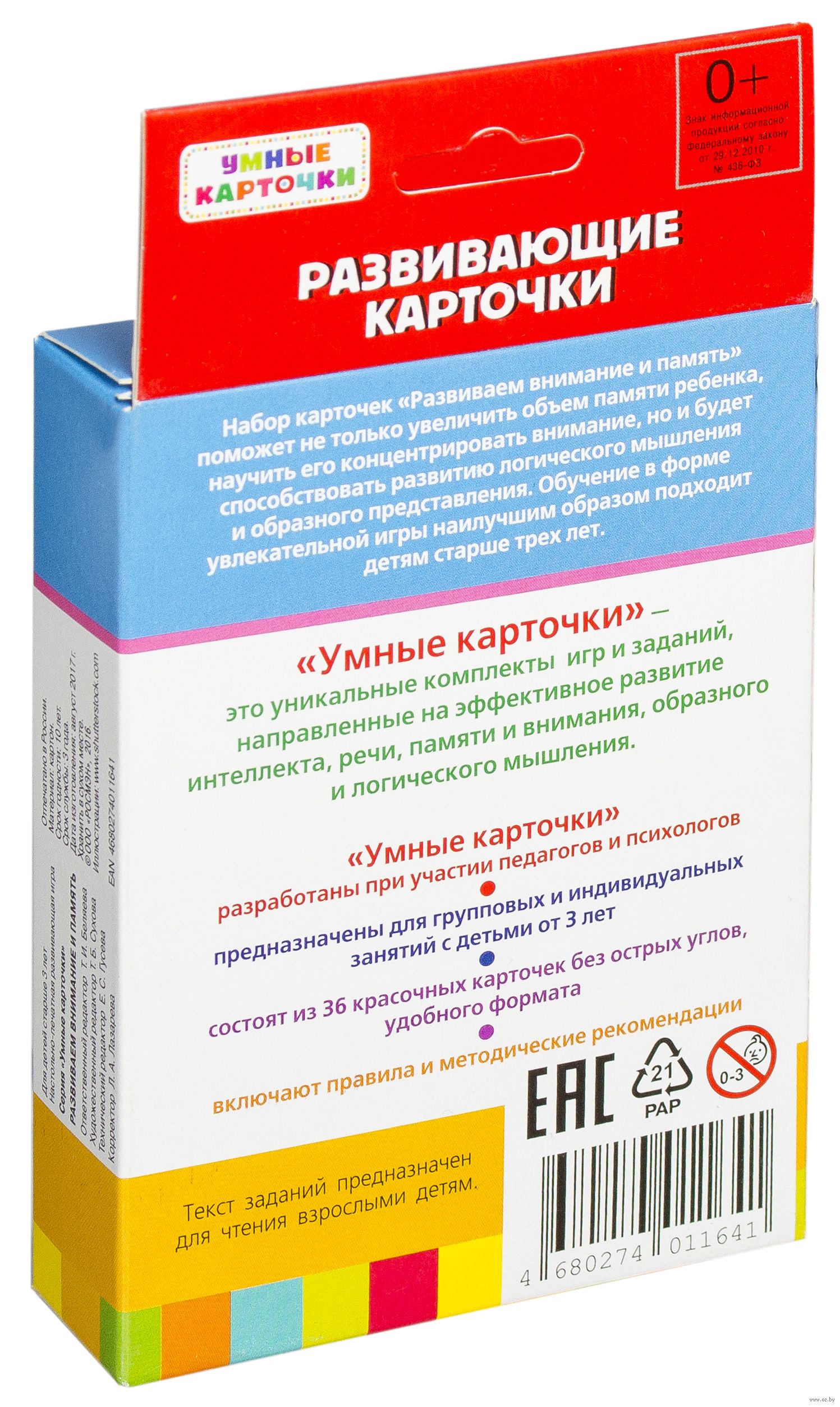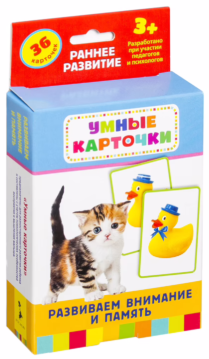 Набор карточек "Развиваем внимание и память" поможет не только увеличить объем памяти ребенка, научить его концентрировать внимание, но и будет способствовать развитию логического мышления и образного представления. Обучение в форме увлекательной игры наилучшим образом подходит детям старше трех лет. Комплект состоит из 17 пар карточек: