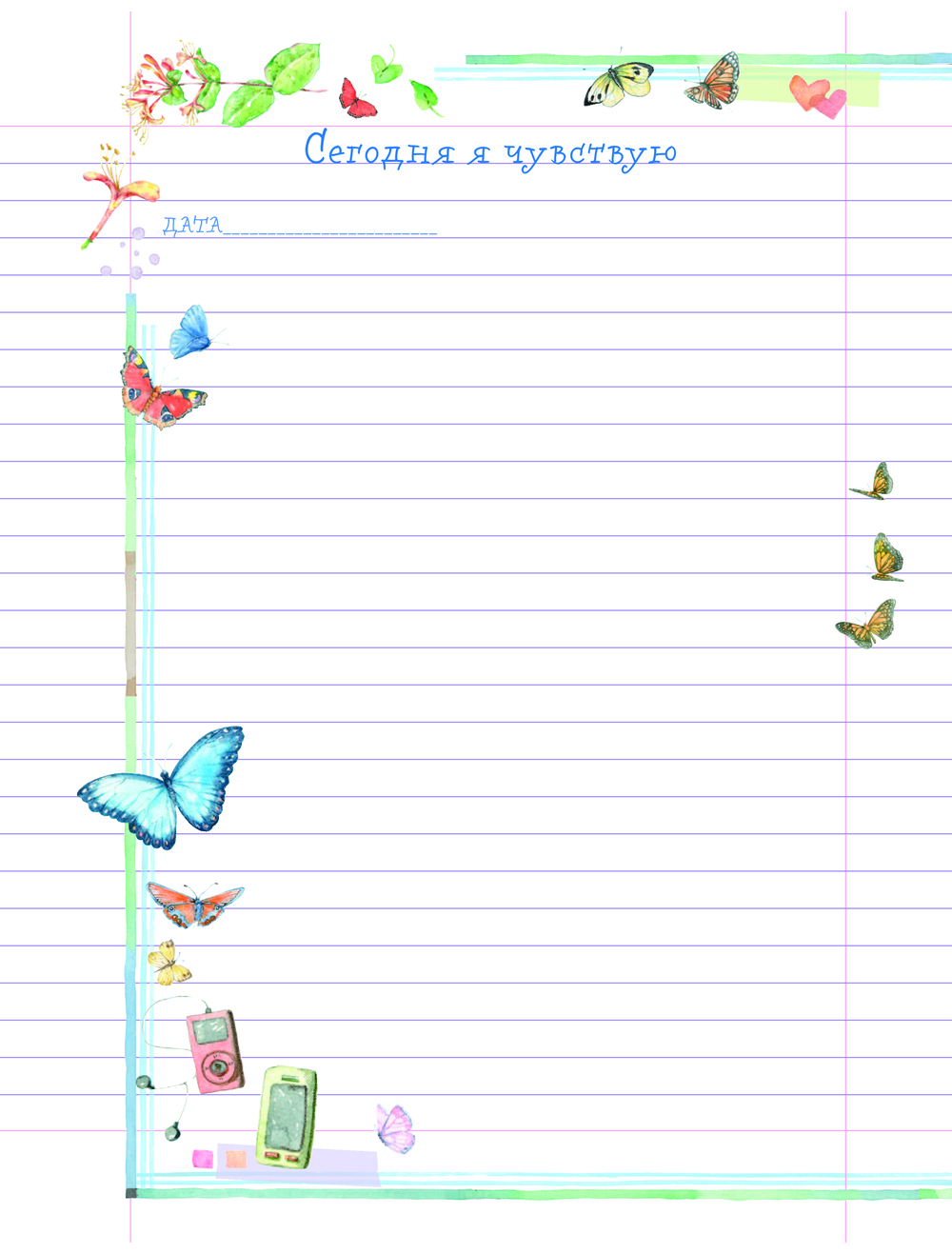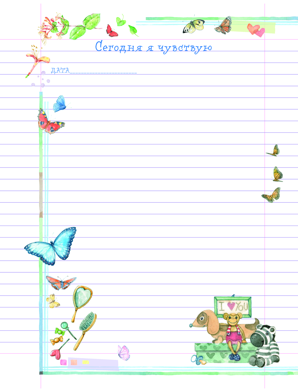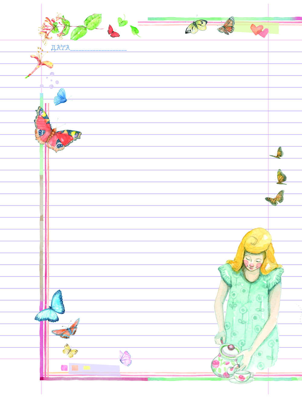 Дневник оформлен красивыми иллюстрациями в приятных и успокаивающих цветах.