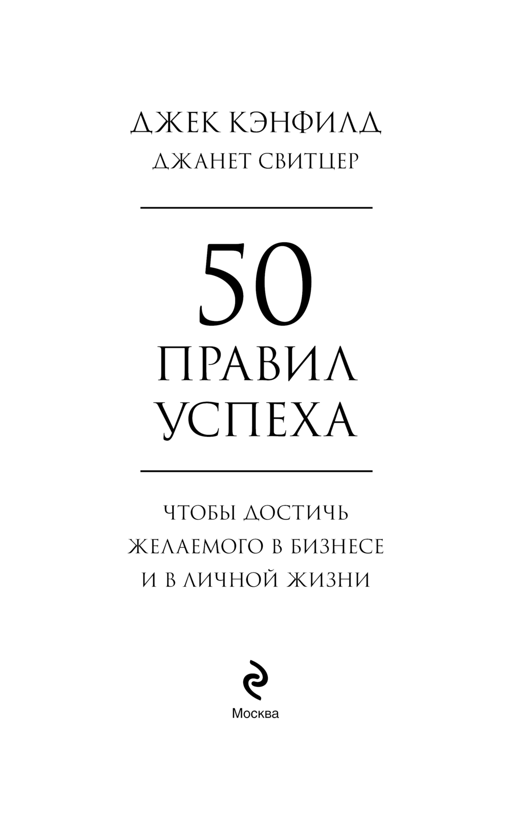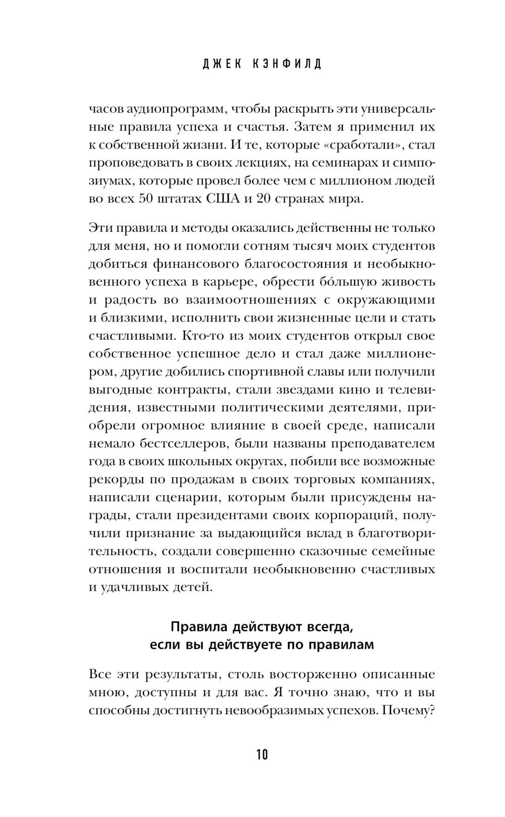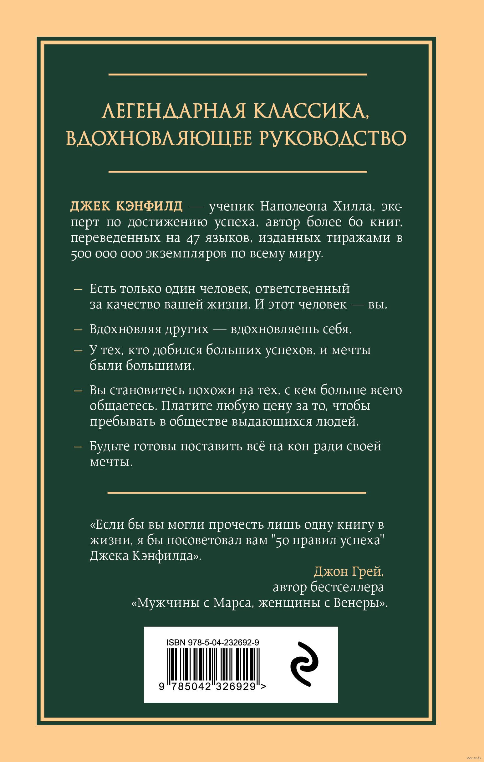 Джек Кэнфилд 30 лет изучал истории людей, которые добились успеха, а затем вывел 50 правил, которыми сам успешно пользуется уже 50 лет. Имя Кэнфилда занесено в Книгу рекордов Гиннесса, а его книги разошлись суммарным тиражом 500 000 000 по всему миру.