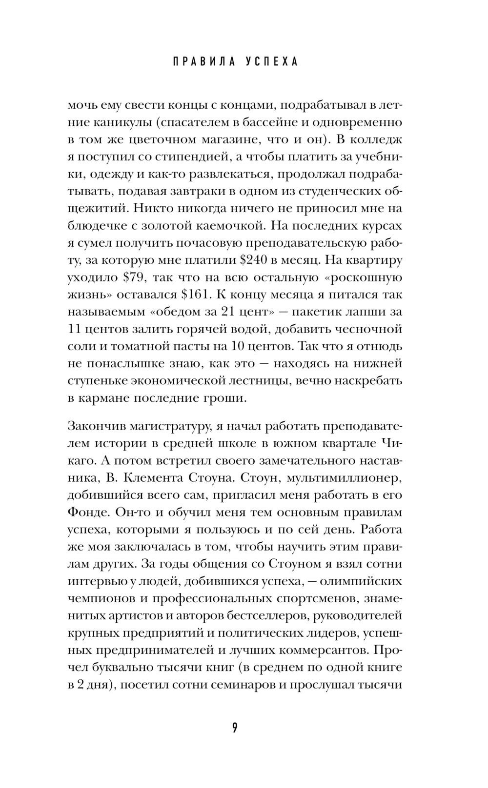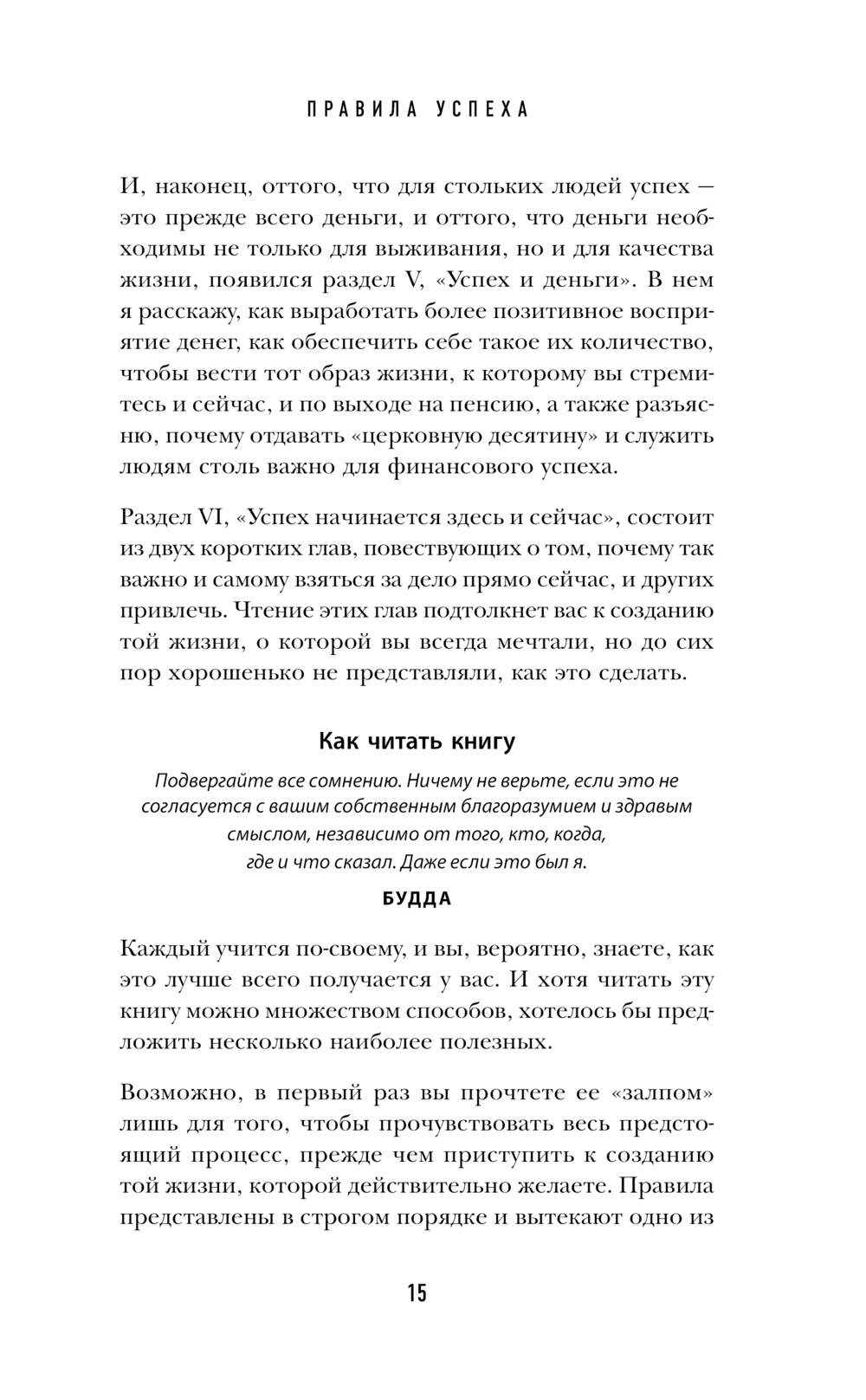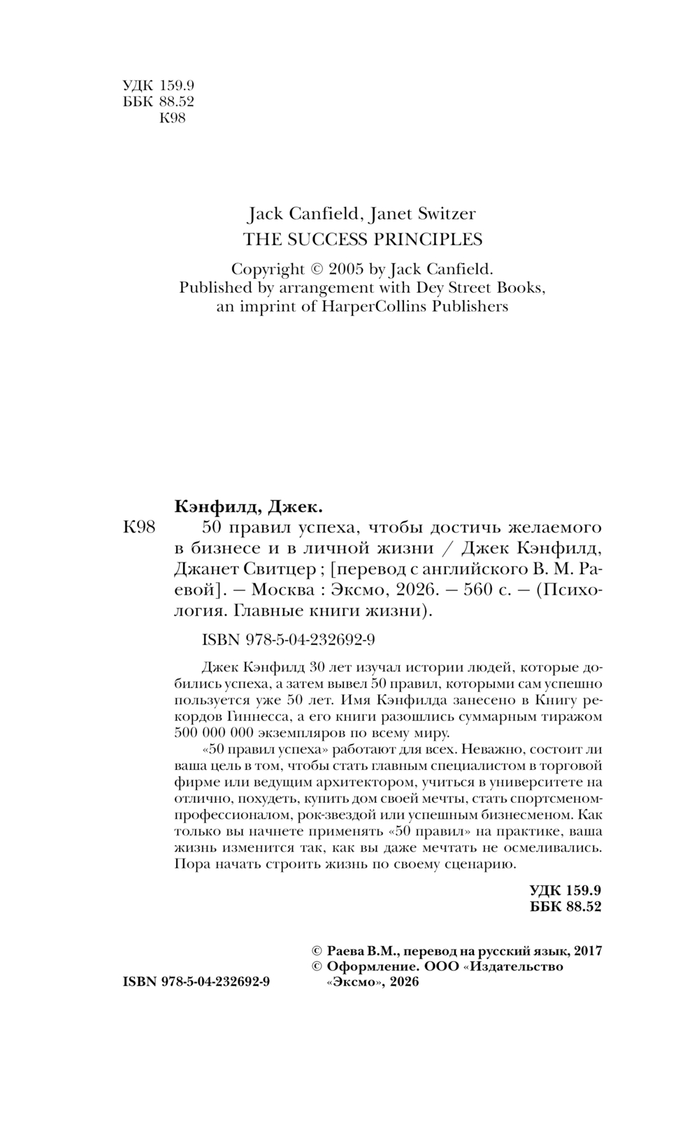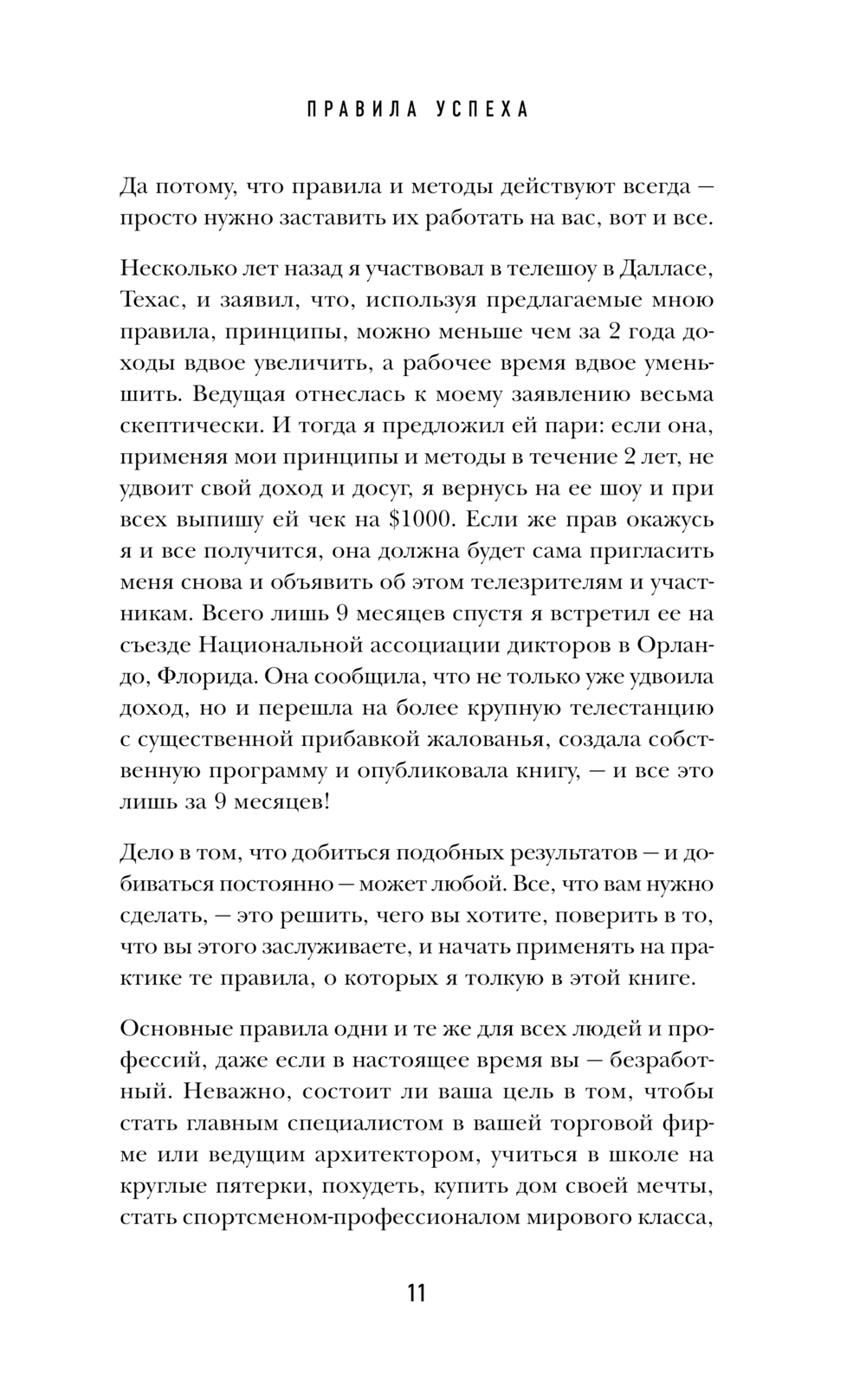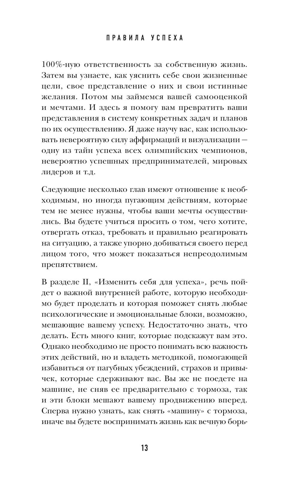 "50 правил успеха" работают для всех. Неважно, состоит ли ваша цель в том, чтобы стать главным специалистом в торговой фирме или ведущим архитектором, учиться в университете на отлично, похудеть, купить дом своей мечты, стать спортсменом-профессионалом, рок-звездой или успешным бизнесменом. Как только вы начнете применять "50 правил" на практике, ваша жизнь изменится так, как вы даже мечтать не осмеливались. Пора начать строить жизнь по своему сценарию.