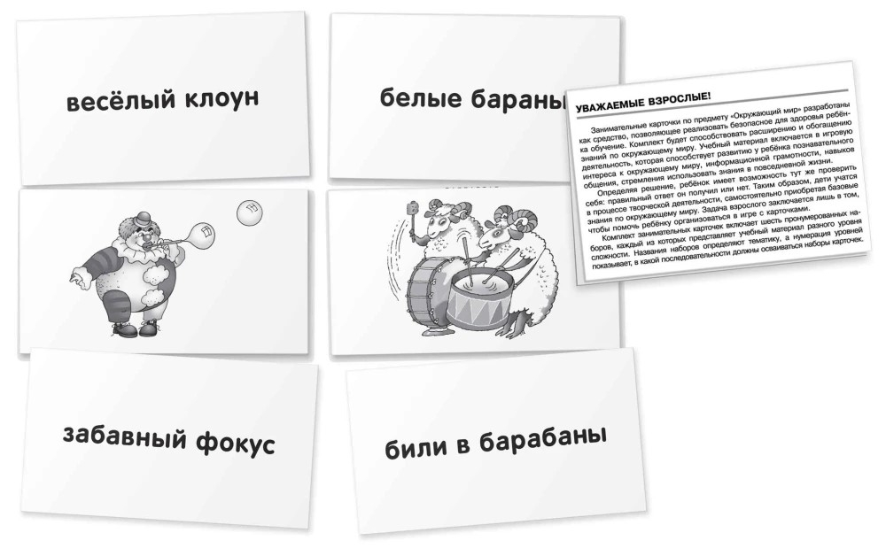 Набор карточек с картинками из серии "Занимательные карточки" входит в состав комплекта по обучению ребенка грамоте.