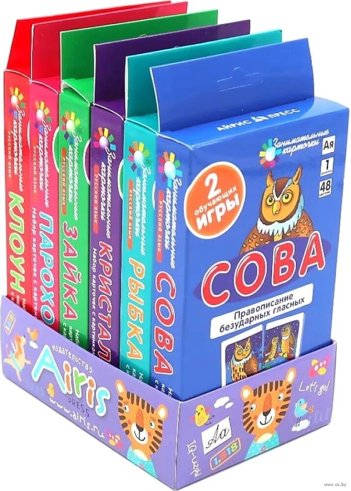 Главная задача комплекта занимательных карточек "Русский язык" – помочь ребёнку освоить основы правописания орфограмм, обязательных для изучения в начальной школе. Особенности игр с карточками позволяют не только обеспечить грамотность письменной речи, но также развивают у школьников познавательный интерес к русскому языку.