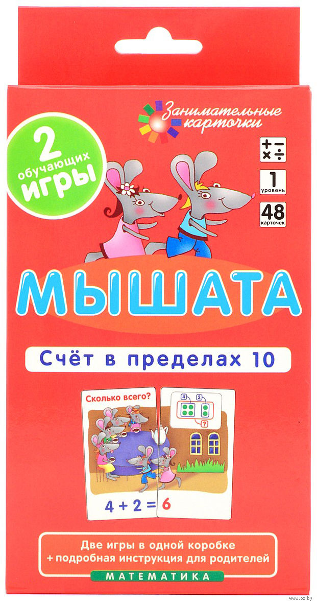 Набор карточек, который поможет научить ребёнка складывать, вычитать и сравнивать числа в пределах 10. Играя, ребёнок решает простые задачи и осваивает вычислительные навыки. Задания созданы по специальной методике, которая не только помогает научиться считать, но и рождает у ребёнка интерес к математике, стремление использовать математические знания в повседневной жизни.