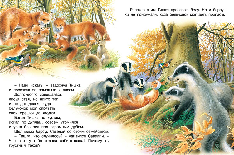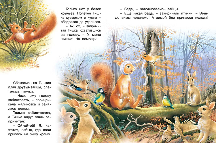 Теплая волшебная сказка с чудесными реалистичными иллюстрациями для уютного семейного чтения или на ночь перед сном. Дети и родители получат удовольствие от времени, проведенном вместе. Малышам обязательно понравятся замечательный познавательный рассказ про дружных лесных обитателей, которые помогали попавшему в беду бельчонку.