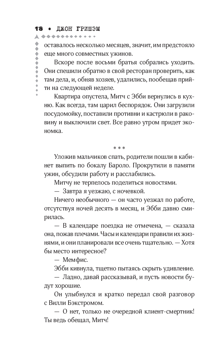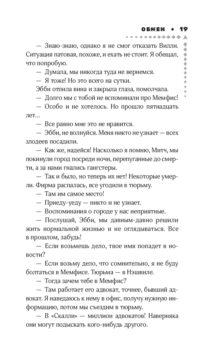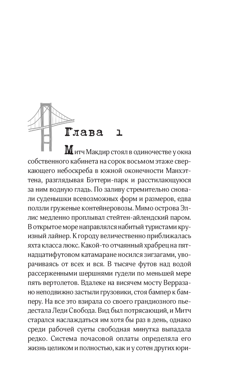 Пятнадцать лет назад Митч Макдир и его жена Эбби сбежали от гангстеров, заправлявших коррумпированной фирмой "Бендини, Ламберт энд Лок". Скрываясь, пара несколько лет прожила за границей, а затем Митч получил престижную должность партнера в крупной нью-йоркской фирме, ведущей дела по всему миру, и поселился с женой на Манхэттене.