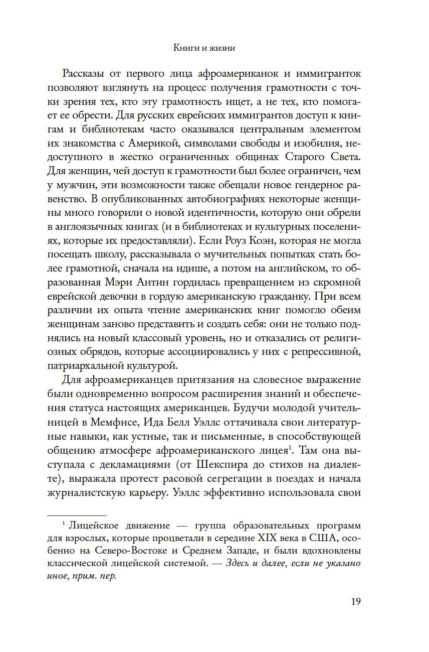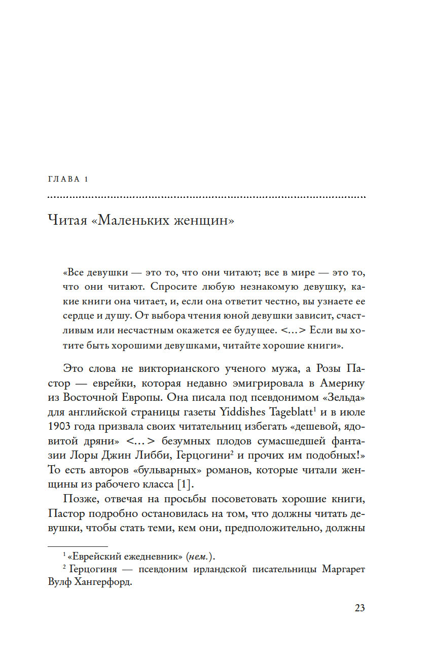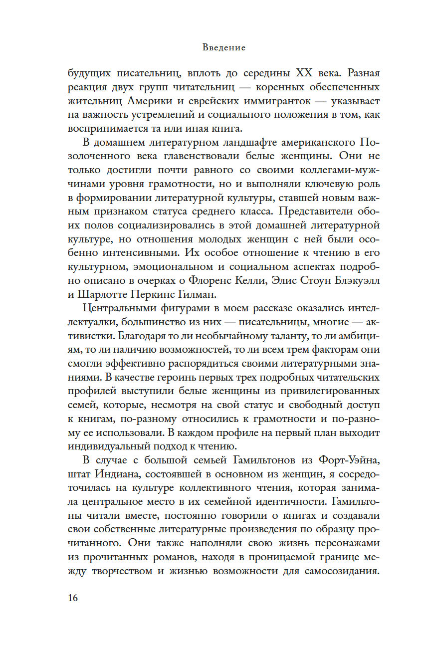 Историк и специалист в области гендерных исследований Барбара Зихерман предлагает новый взгляд на книжную и интеллектуальную культуру Позолоченного века и на удивительных женщин, которые ее творили. В своей работе Зихерман глубоко исследует роль литературы в судьбах женщин конца XIX – начала XX века – их образование, досуг, круг чтения. Они ходили в читальные залы для женщин и открывали их, организовывали литературные кружки и благодаря книгам обретали себя – как интеллектуалки и педагоги, исследовательницы и социальные реформаторы, меняющие мир.