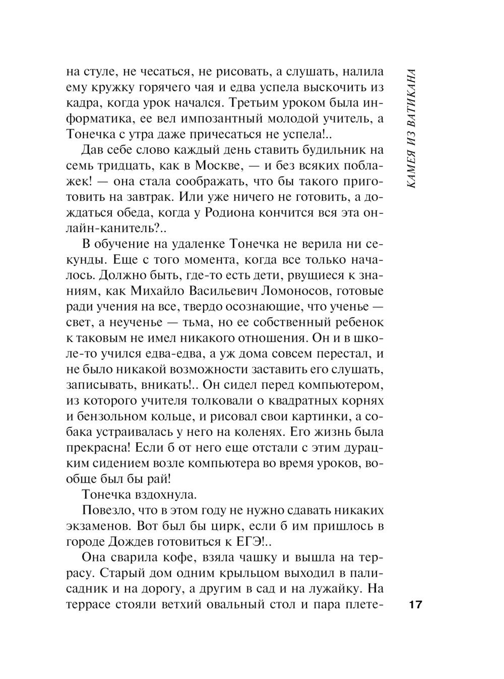 Однажды утром этот новый, еще не до конца обжитый, странный мир переворачивается – погибает соседка, пожилая особа, которую все за глаза звали "старой княгиней". И еще из Москвы приезжает Саша Шумакова – теперь новая подруга Тонечки.