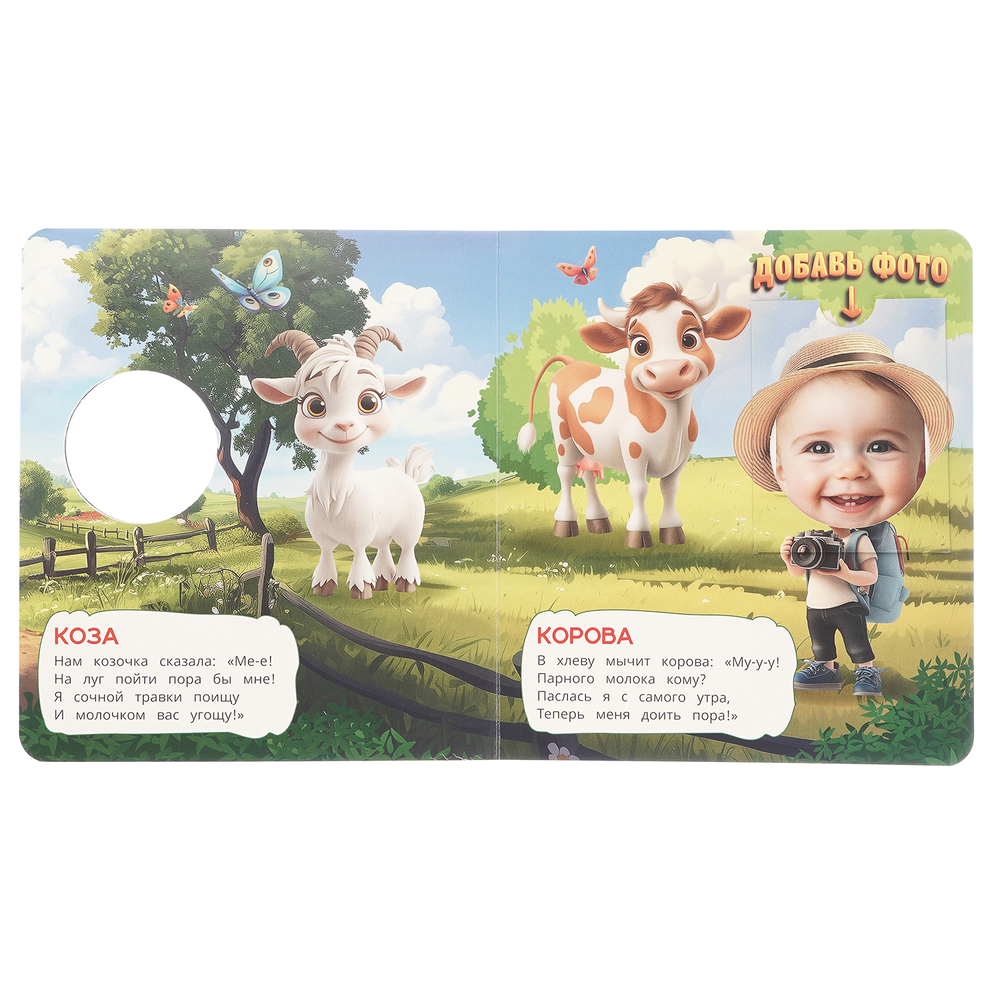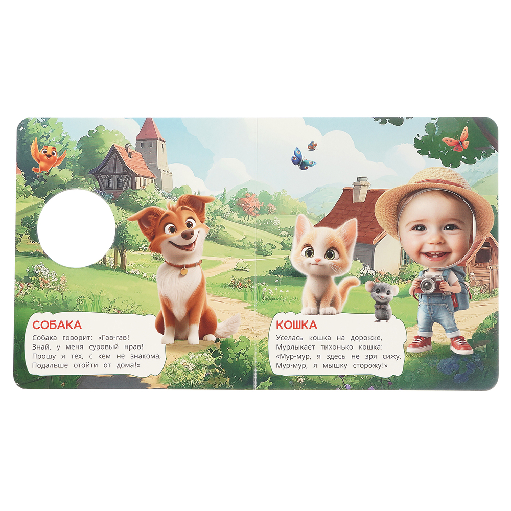 Эта книга – необычная, ведь её главным героем будет ваш малыш! В специальный кармашек вставляется его фотография, и начинается его знакомство с персонажами книжки и путешествие по её страницам. Кроме того, данное издание станет отличным помощником в знакомстве ребёнка с миром домашних животных. Яркие картинки привлекут внимание малыша, а небольшой объём позволит не утомлять его во время чтения. Благодаря компактному размеру книгу удобно брать повсюду с собой.