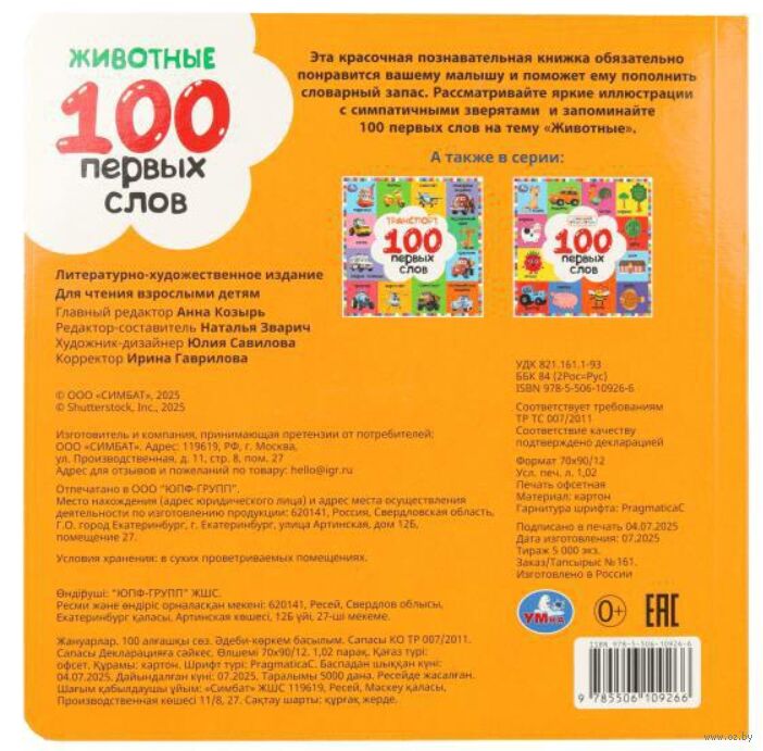 Животные. 100 первых слов