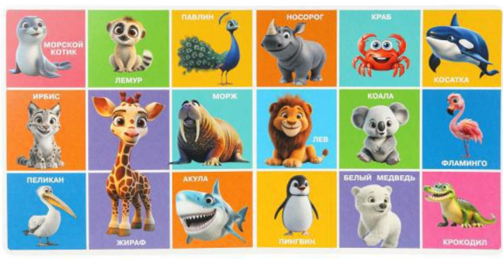 В данной книге представлена игровая методика раннего развития, которая отлично подходит для самых маленьких любознаек. Малышам будет интересно рассматривать картинки, узнавая в ярких изображениях самых разных животных: домашних, лесных, диких, подводных и даже экзотических – и радостно их называть, а также подражать их голосам. Издание выполнено из плотного картона, чтобы ребёнок не смог повредить странички.