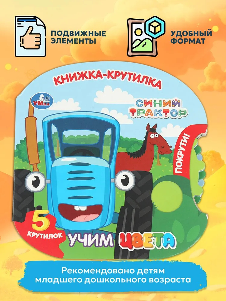Книжка-крутилка "Синий Трактор. Учим цвета" создана специально для детей, чтобы развивать их фантазию и воображение, помочь освоить навыки счета. Книга наполнена красочными иллюстрациями и подвижными элементами, которые захватят воображение ребенка. Увлекательный обучающий сюжет и наличие интерактивных деталей сделает эту книжку любимой игрушкой малыша.