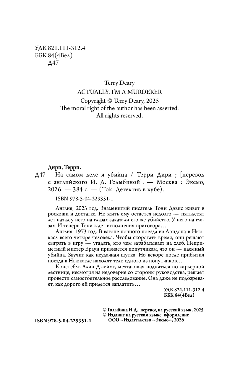 Англия, 1973 год. В вагоне ночного поезда из Лондона в Ньюкасл всего четыре человека. Чтобы скоротать время, они решают сыграть в игру – угадать, кто чем зарабатывает на хлеб. Неприметный мистер Браун признается попутчикам, что он – наемный убийца. Казалось бы – неудачная шутка. Наемных убийц не существует, правда? Но вскоре после прибытия поезда в Ньюкасле находят тело одного из попутчиков…