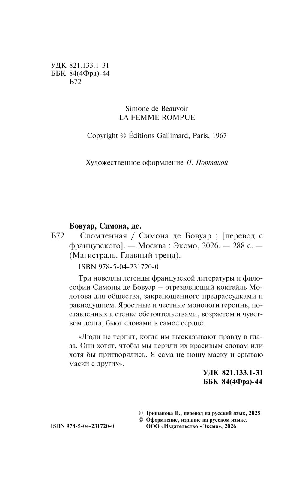 Три новеллы легенды французской литературы и философии Симоны де Бовуар – отрезвляющий коктейль Молотова для общества, закрепощенного предрассудками и равнодушием. Яростные и честные монологи героинь, поставленных к стенке обстоятельствами, возрастом и чувством долга, бьют словами в самое сердце.