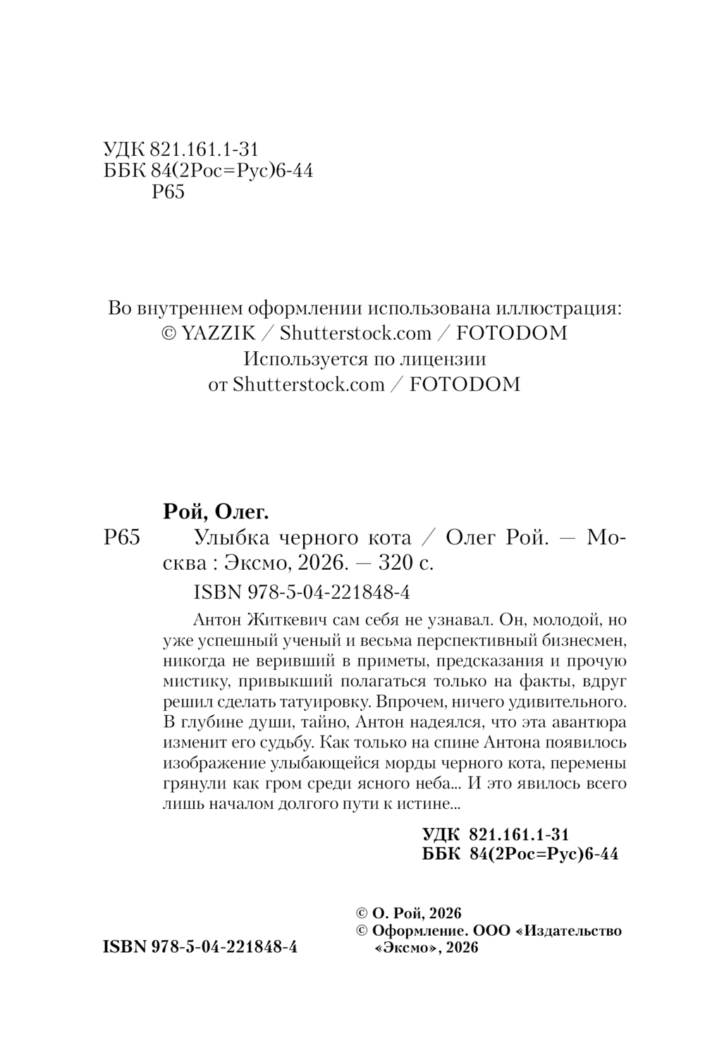Антон Житкевич сам себя не узнавал. Он, молодой, но уже успешный ученый и весьма перспективный бизнесмен, никогда не веривший в приметы, предсказания и прочую мистику, привыкший полагаться только на факты, вдруг решил сделать татуировку. Впрочем, ничего удивительного. В глубине души, тайно, Антон надеялся, что эта авантюра изменит его судьбу. Как только на спине Антона появилось изображение улыбающейся морды черного кота, перемены грянули как гром среди ясного неба... И это явилось всего лишь началом долгого пути к истине...