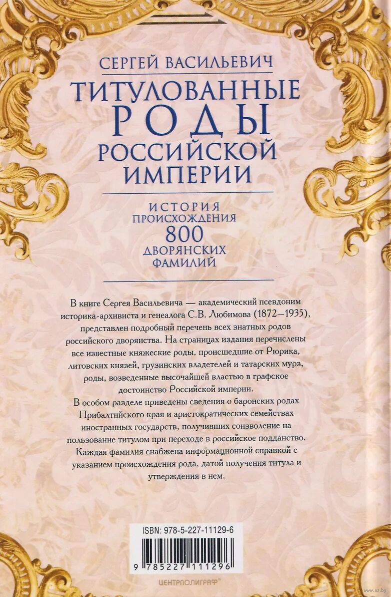 На страницах издания перечислены все известные княжеские роды, происшедшие от Рюрика, литовских князей, грузинских владетелей и татарских мурз, роды, возведенные высочайшей властью в графское достоинство Российской империи и причисленные к нему иностранные графские фамилии. В особом разделе приведены сведения о баронских родах Прибалтийского края и аристократических семействахиностранных государств, получивших соизволение на пользование титулом при переходе в российское подданство. Каждая фамилия снабжена информационной справкой с указанием происхождения рода, датой получения титула и утверждения в нем.