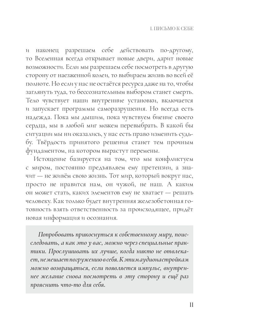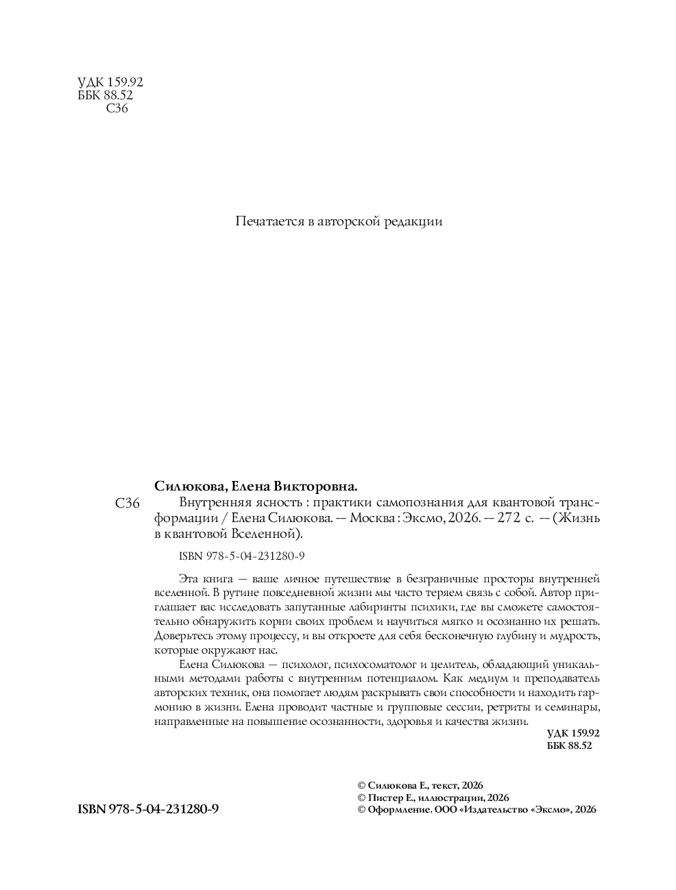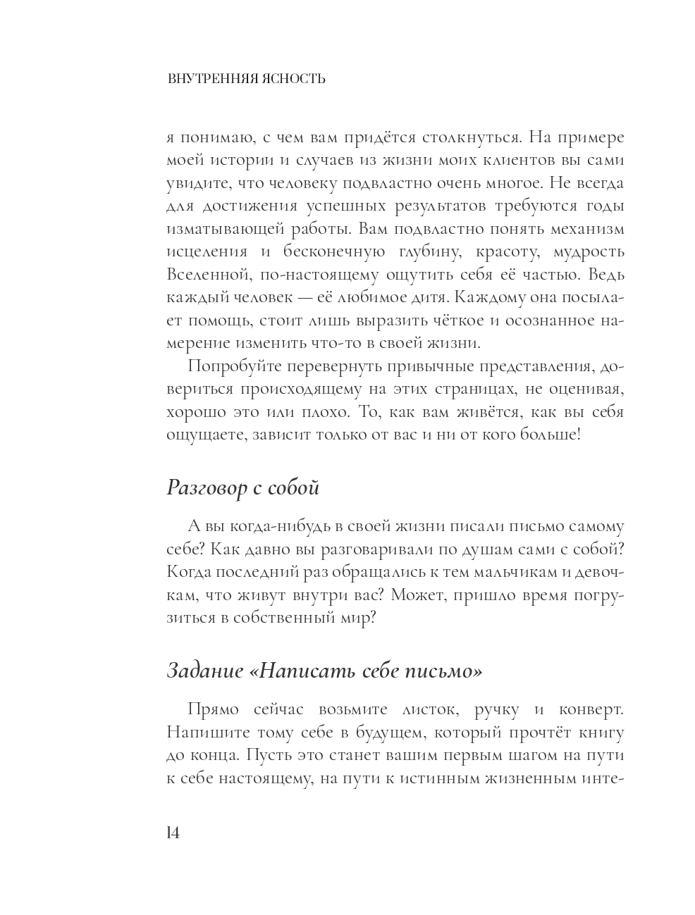 Эта книга – ваше личное путешествие в безграничные просторы внутренней Вселенной. В рутине повседневной жизни мы часто теряем связь с собой. Автор приглашает вас исследовать запутанные лабиринты психики, где вы сможете самостоятельно обнаружить корни своих проблем и научиться мягко и осознанно их решать. Доверьтесь этому процессу, и вы откроете для себя бесконечную глубину и мудрость, которые окружают нас.