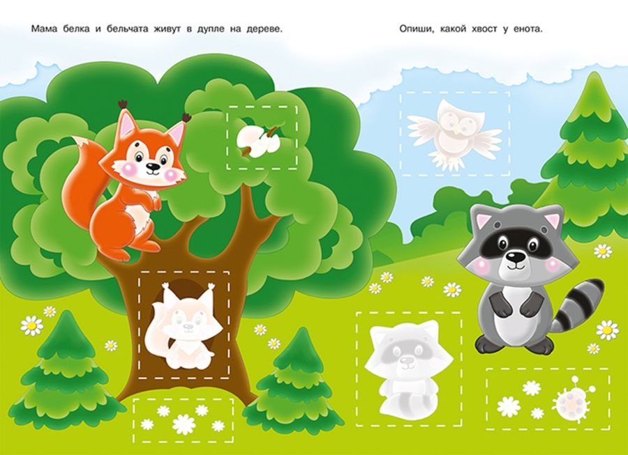 "Лесные звери" из серии "Вырежи и наклей" – это пособие с красочными картинками для расширения кругозора и развития мелкой моторики детей дошкольного возраста. Внутри брошюры находится разворот с карточками, которые ребёнок сможет вырезать и наклеить на соответствующие страницы.