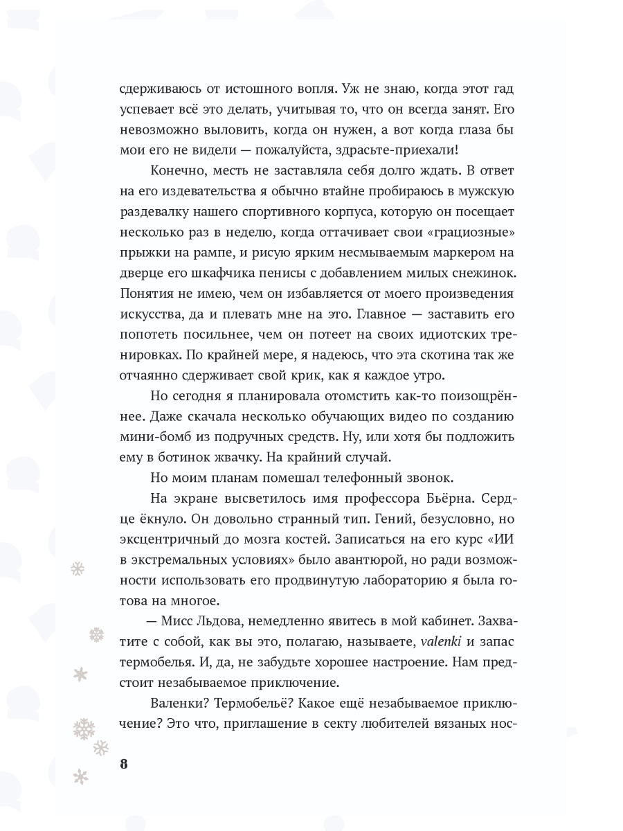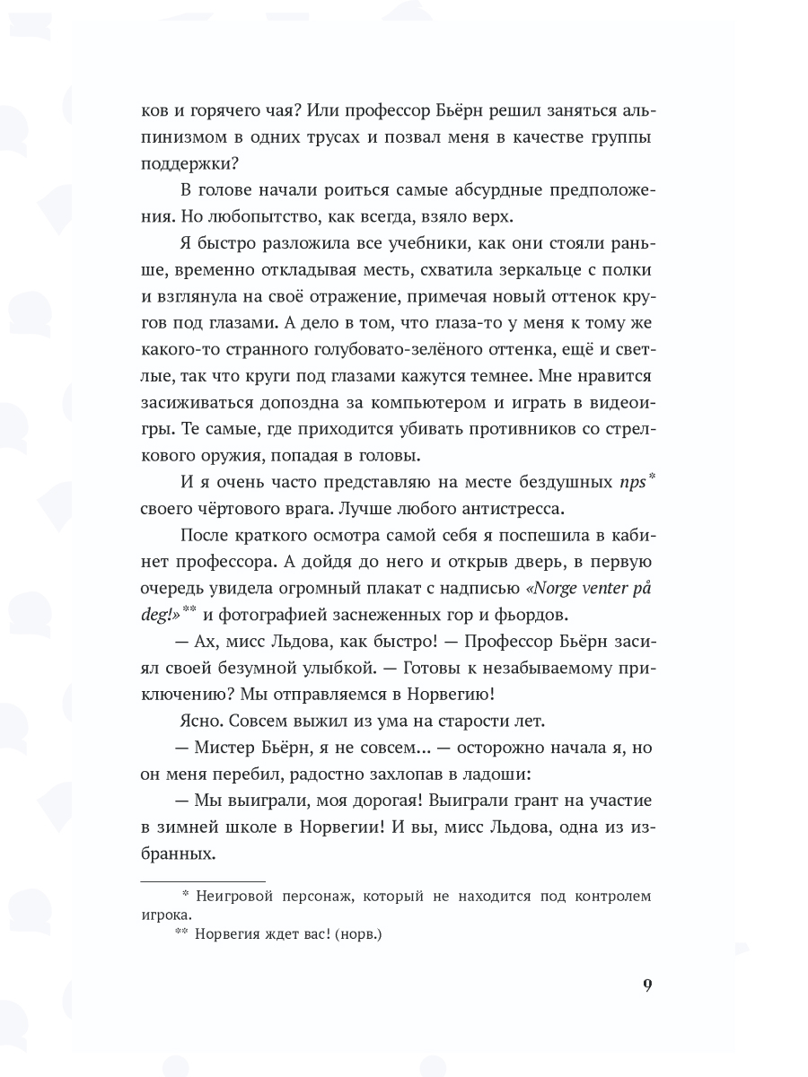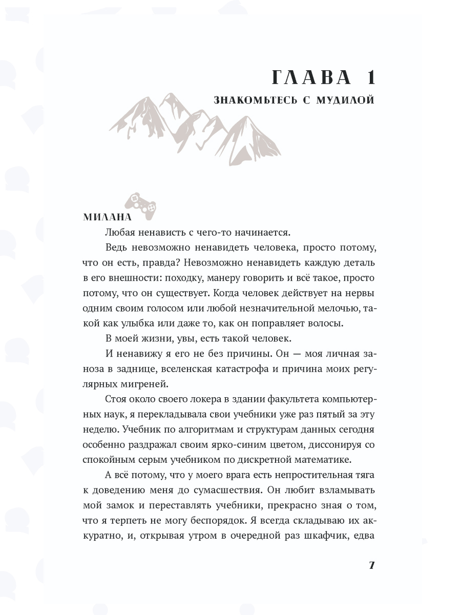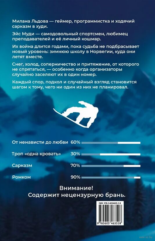 Милана Льдова – геймер, программистка и ходячий сарказм в худи. Эйс Муди – самодовольный спортсмен, любимец преподавателей и её личный кошмар. Их война длится годами, пока судьба не подбрасывает новый уровень: зимнюю школу в Норвегии, куда они летят вместе. Снег, холод, соперничество и! притяжение, от которого не спрятаться, – особенно когда организаторы случайно заселяют их в один номер. Каждый спор, подкол и случайный взгляд становится шагом к тому, чего ни один из них не планировал.