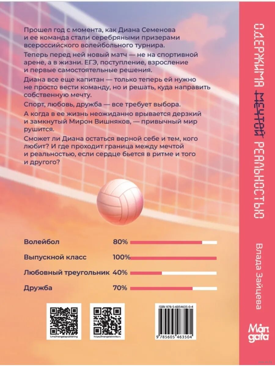 Прошел год с тех пор, как Диана Семёнова и ее команда стали серебряными призерами всероссийского волейбольного турнира. Теперь перед ней новый матч – не на спортивной арене, авжизни. ЕГЭ, поступление, взросление и первые самостоятельные решения. Диана все еще капитан – только теперь ей нужно не просто вести команду, но и решать, куда направить собственную мечту.