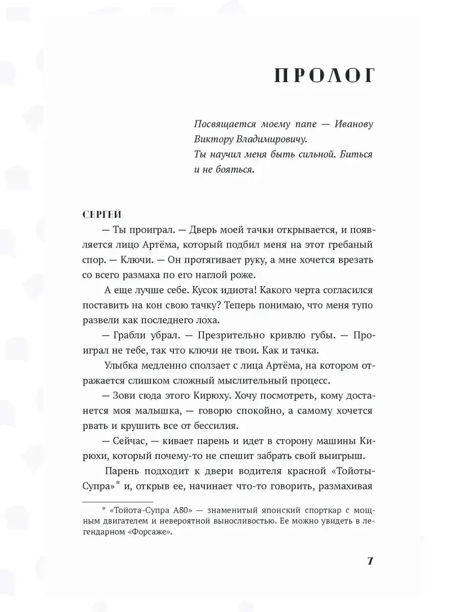 Сергей Жаров привык быть первым во всем – в спорах, соперничестве за внимание девушек и в гонках. Но одна ошибка на трассе запускает цепочку событий, и ставки оказываются слишком высоки. Кира – сводная сестра Сергея, и она единственная, кто не спешит играть по его правилам. Колючая, принципиальная, опасно привлекательная, она становится главным вызовом для Жарова. Каждый их диалог – настоящий поединок, каждое прикосновение – искра, грозящая поджечь все вокруг. Гонки, адреналин, семейные тайны и запретное притяжение