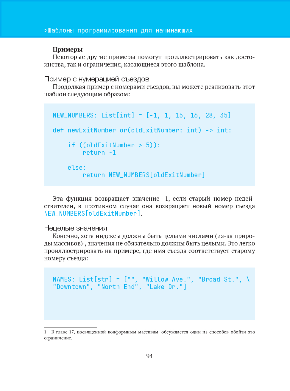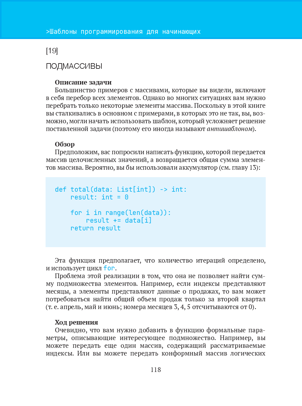 Книга содержит шаблоны для решения конкретных задач программирования на языке Python, которые можно применять в виде готового фрагмента кода. Комбинируя эти шаблоны, начинающий разработчик сможет решать более трудные задачи.