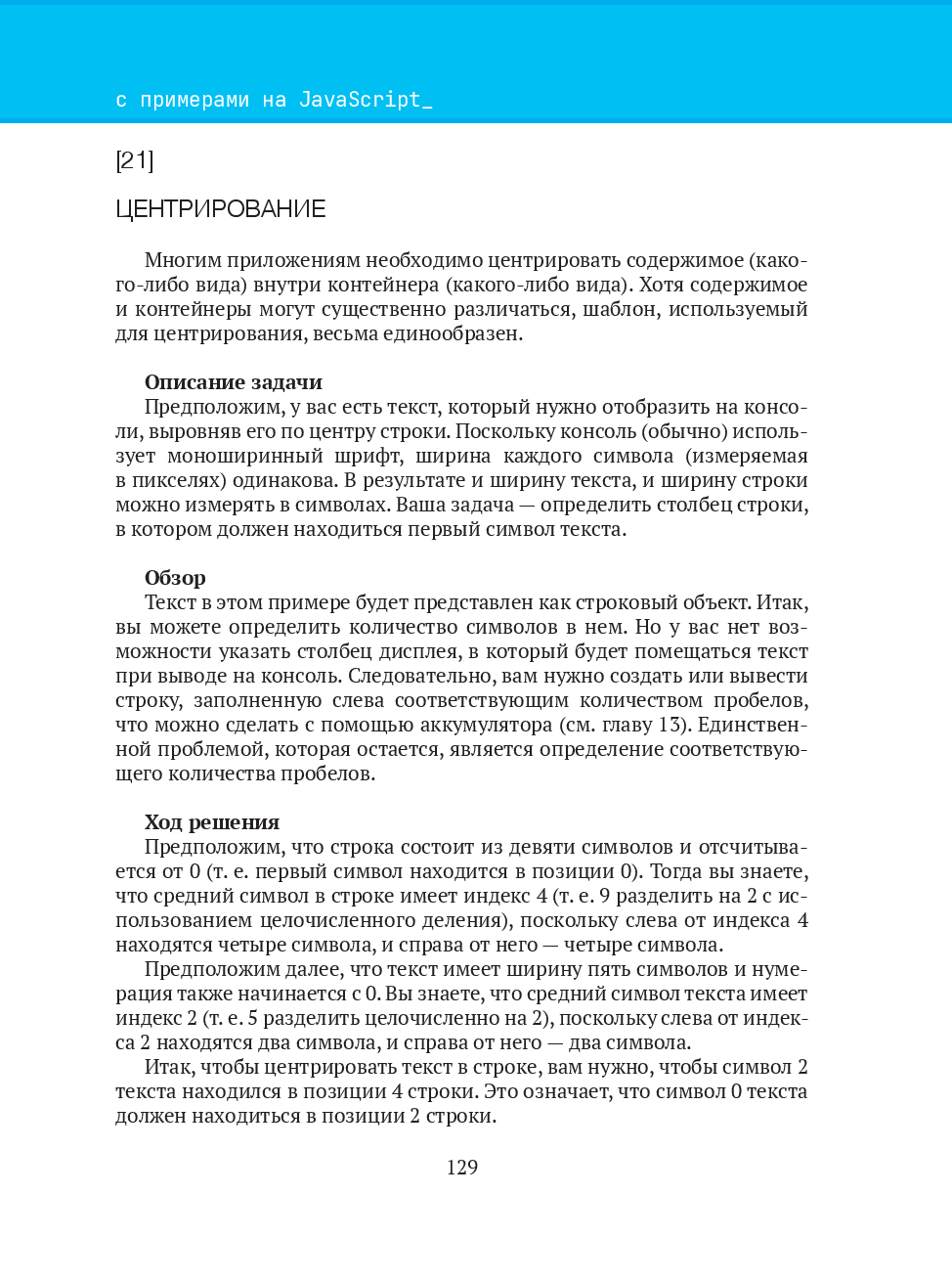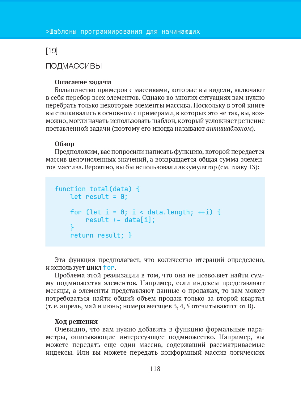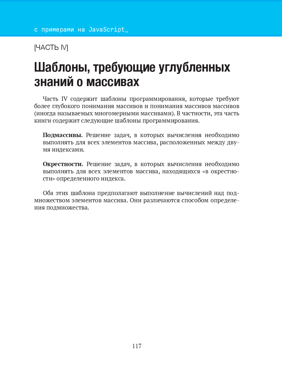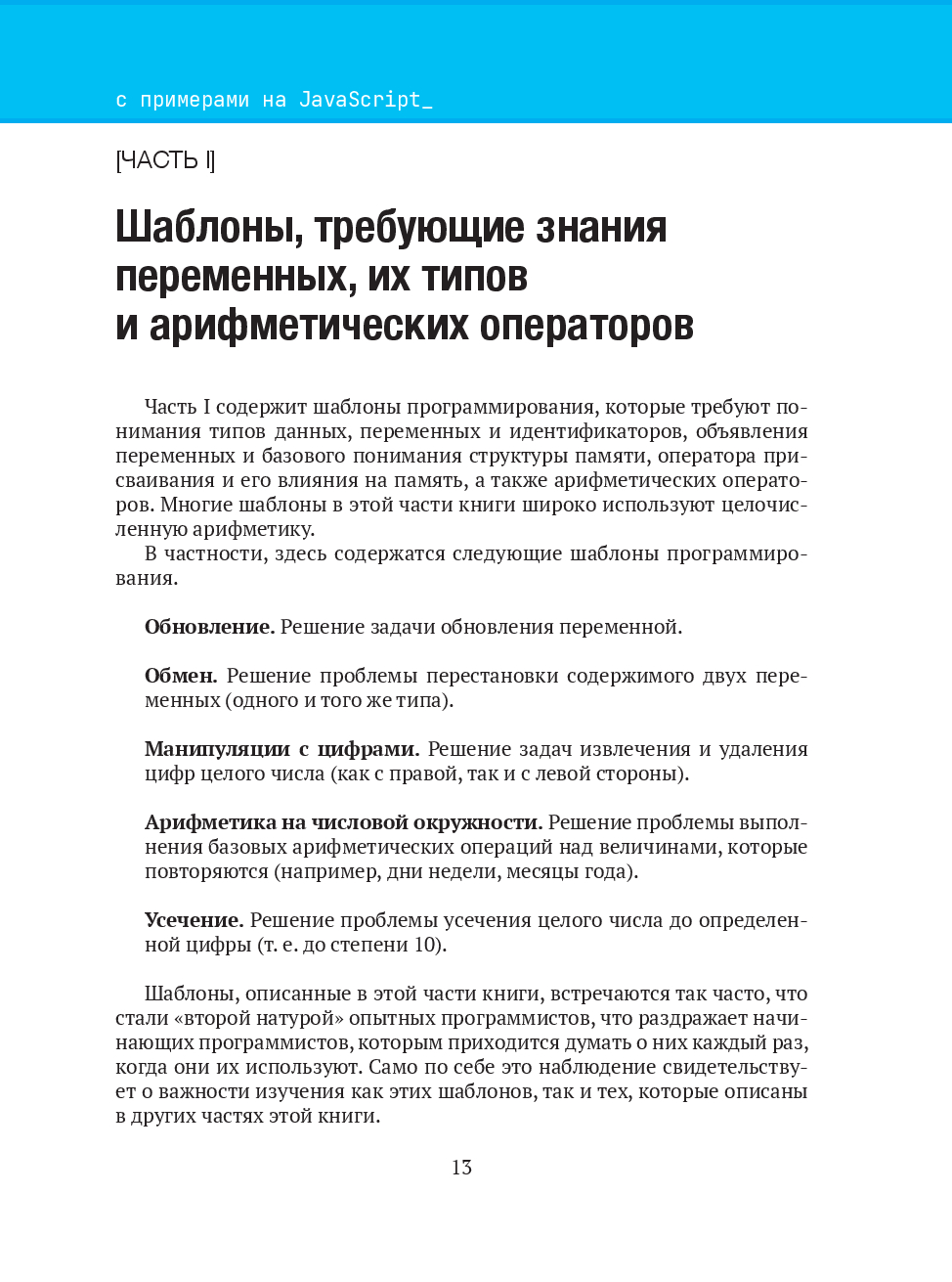 Книга содержит шаблоны для решения конкретных задач программирования на языке JavaScript, которые можно применять в виде готового фрагмента кода. Комбинируя эти шаблоны, начинающий разработчик сможет решать более трудные задачи.